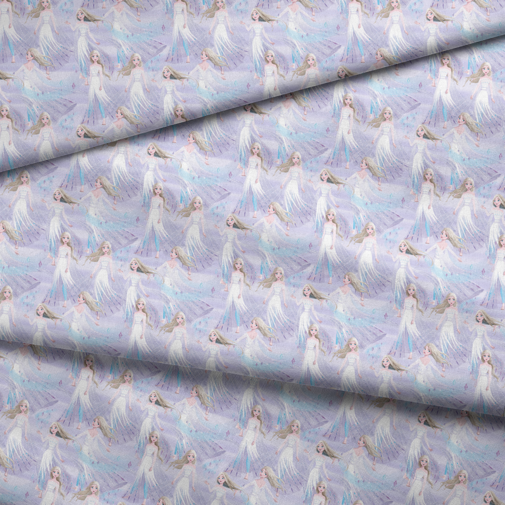 Beautiful Disney Frozen design featuring Elsa in shades of icy blue, purple, and white with delicate snowflakes - perfect for winter decor and Disney apparel.