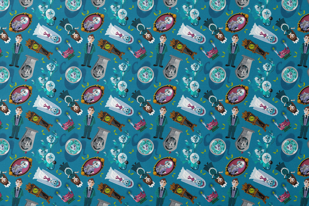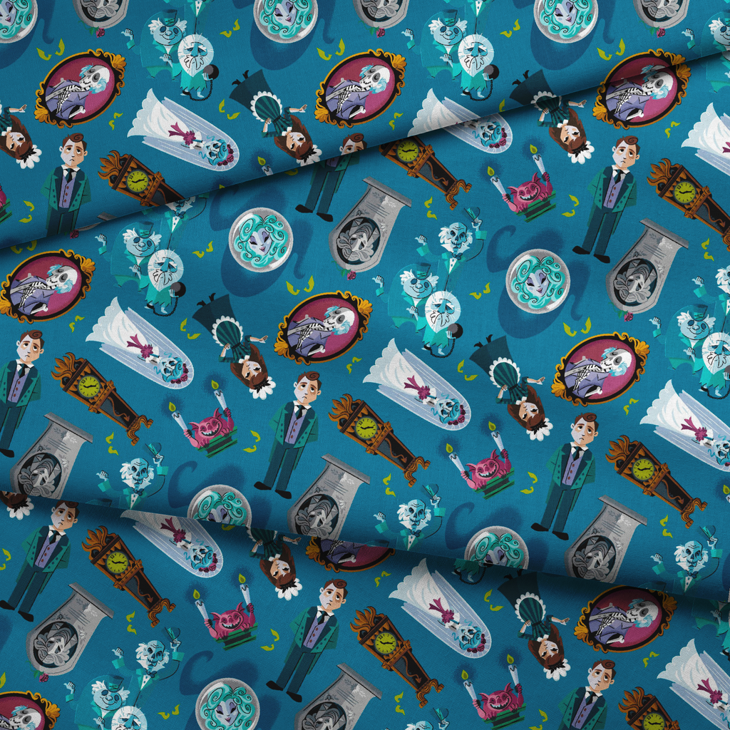 Disney Haunted Mansion Blue Gothic Character Fabric