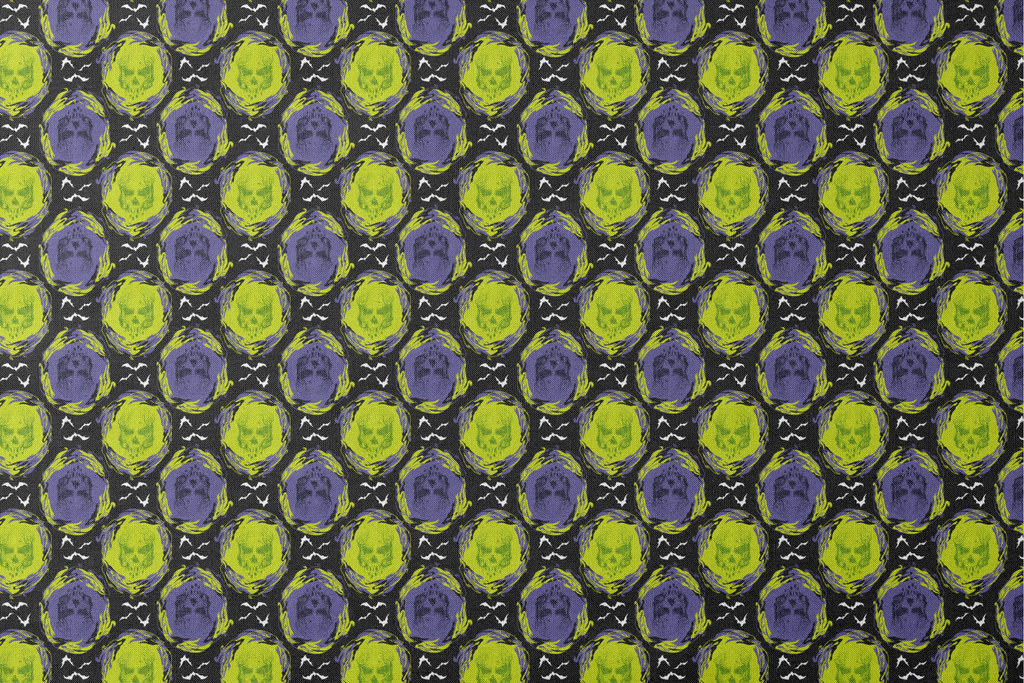 Disney Haunted Mansion Purple & Green Skulls Fabric
