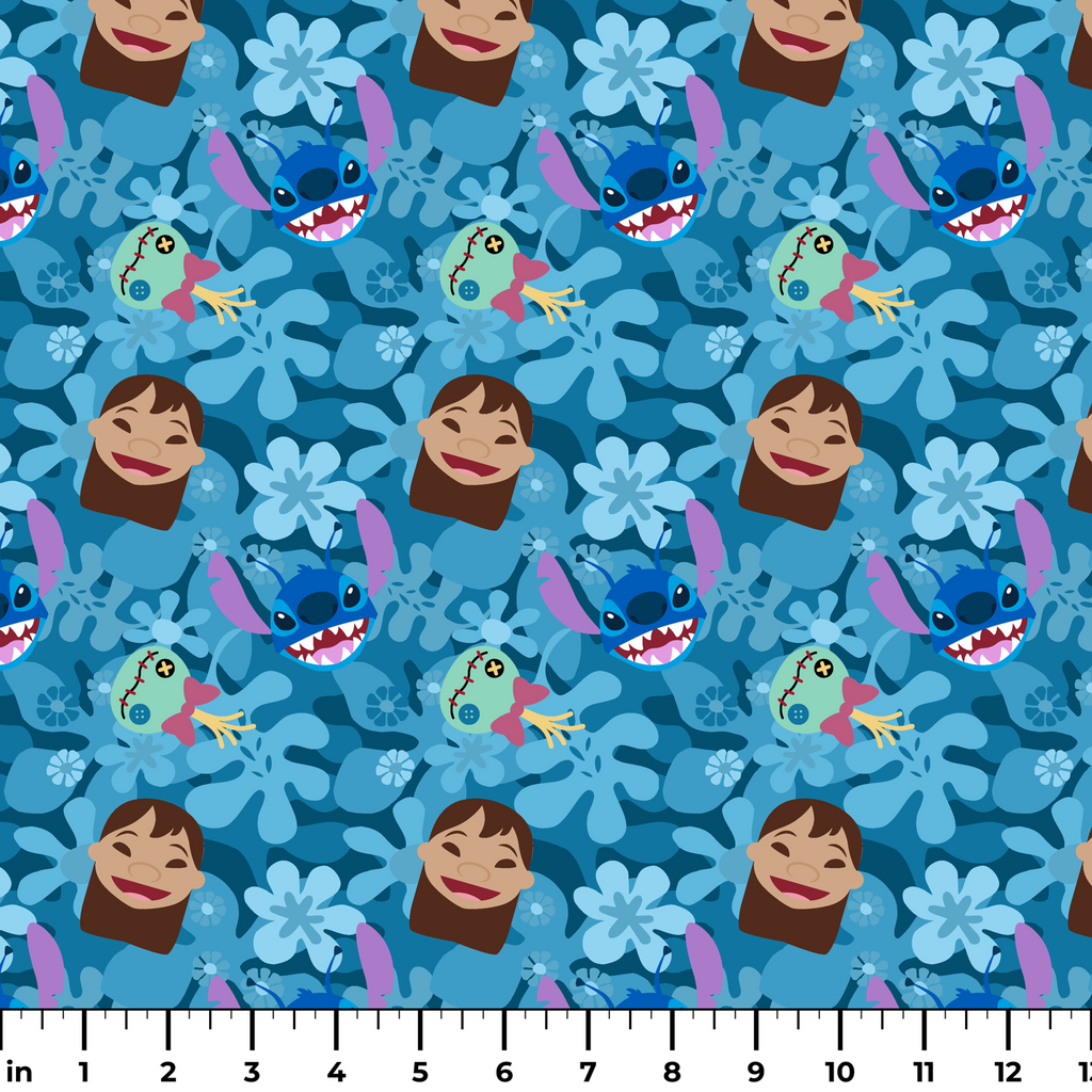 Disney Lilo & Stitch – Mischief Mode – Blue Floral Toss Fabric
