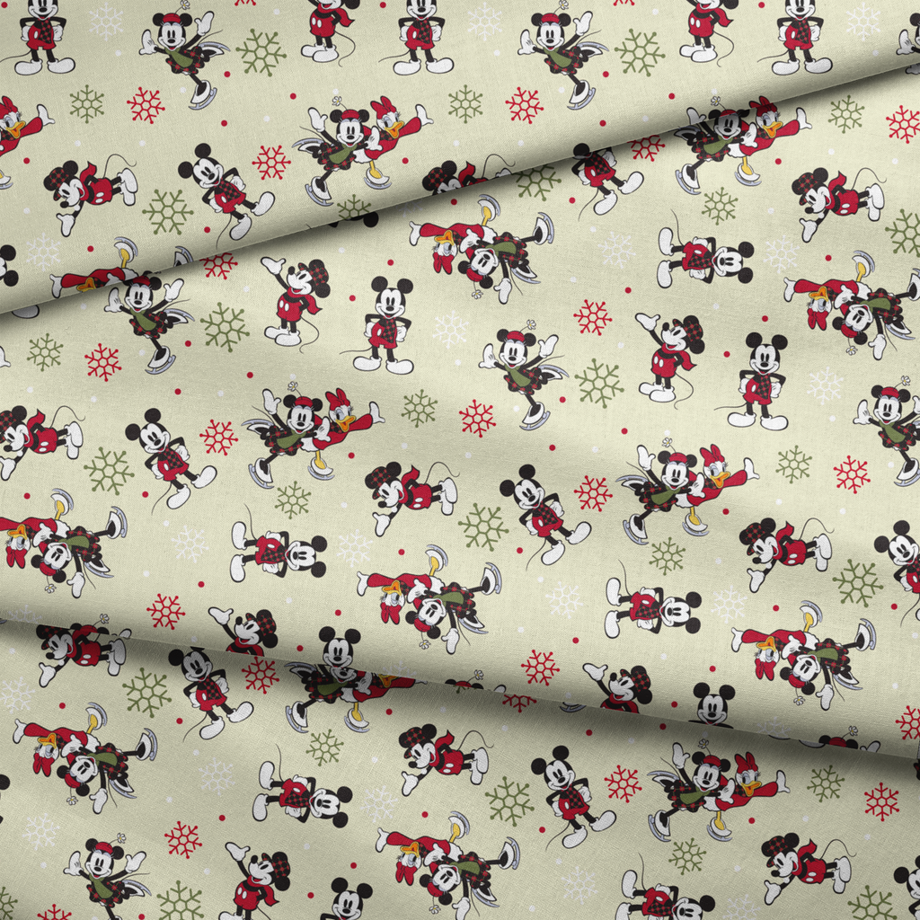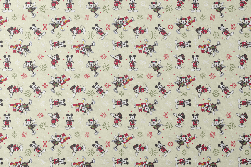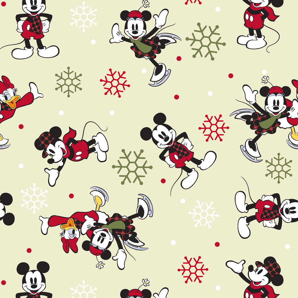 Disney Mickey & Friends Yuletide Holiday Pattern on Cream