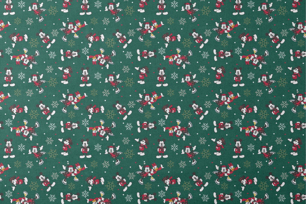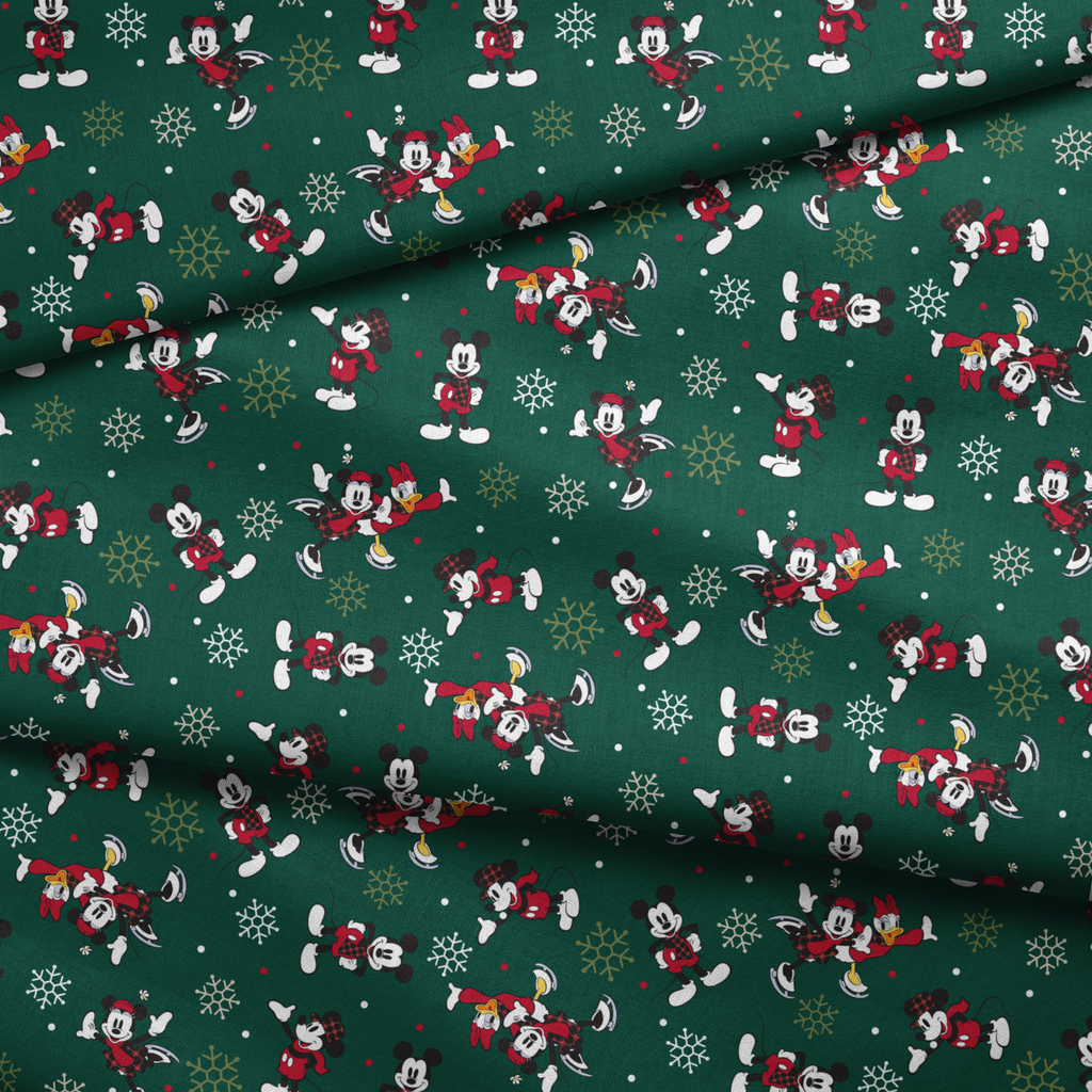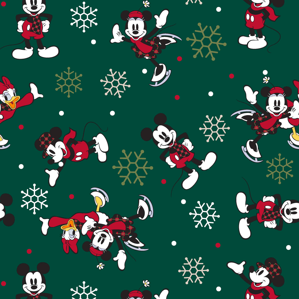 Disney Mickey & Friends Yuletide Holiday Pattern on Green