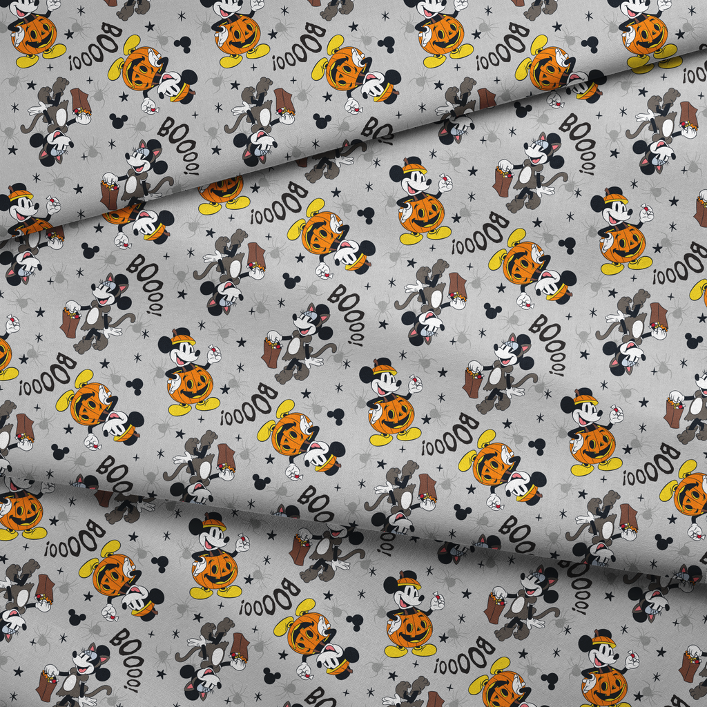 Disney Mickey Mouse Gray Halloween Boo Fabric