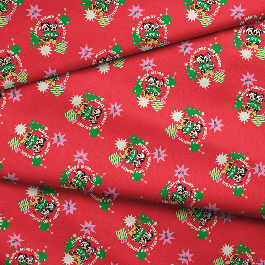 Disney Mickey Mouse & Minnie Mouse Always Merry and Bright Christmas Toss Fabric