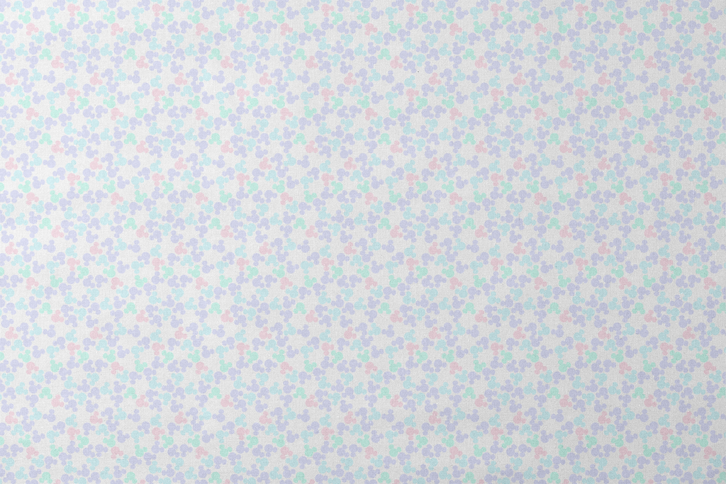 Soft Disney Mickey Mouse inspired pattern featuring whimsical circular motifs in pastel lavender, mint, blush, and pale blue. Perfect for baby decor, children's apparel, or nursery accessories.