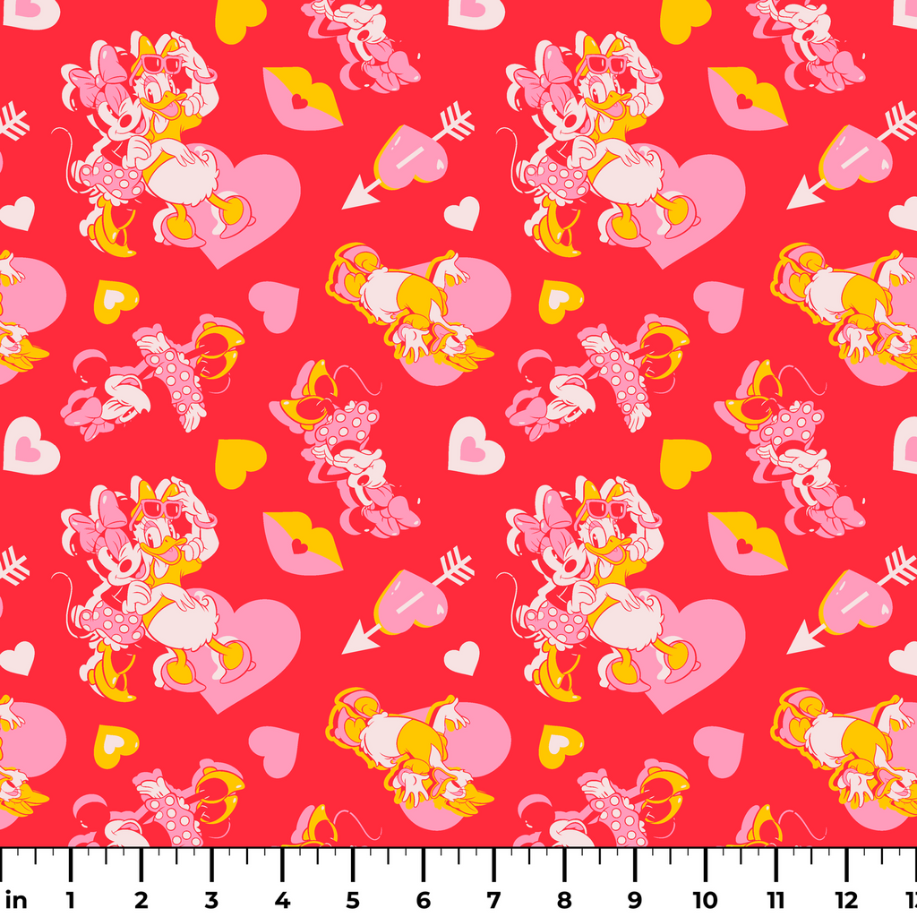 Disney Minnie Mouse and Daisy Duck Galentine's on Red Fabric