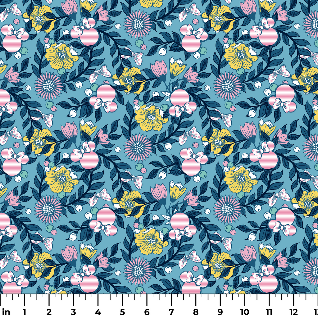 Disney Minnie Mouse Floral Bloom on Teal Fabric