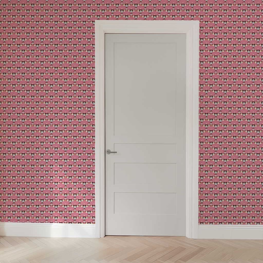 Disney Minnie Mouse Lattice Polka Dot on Pink Wallpaper