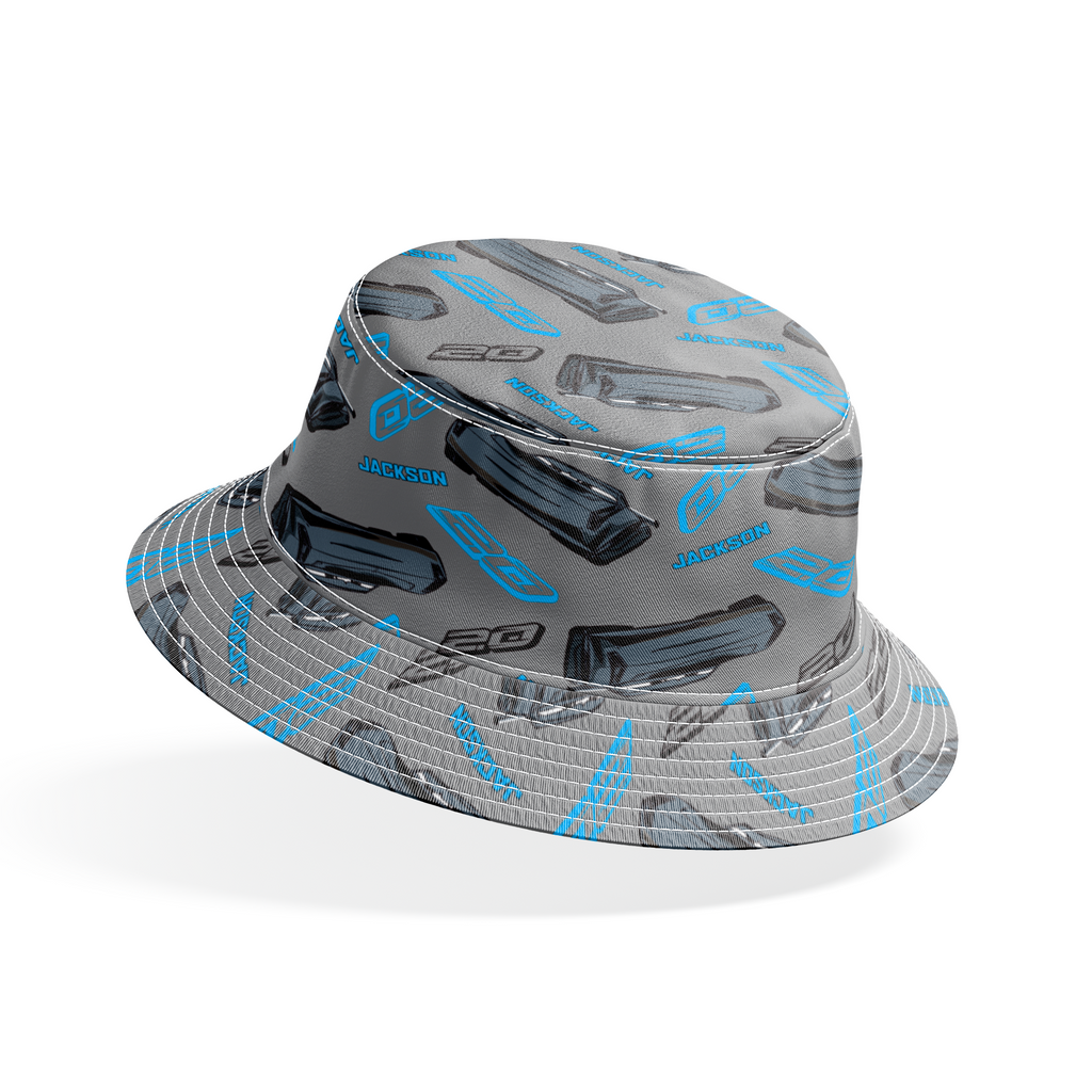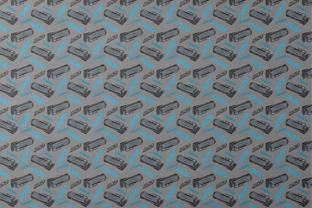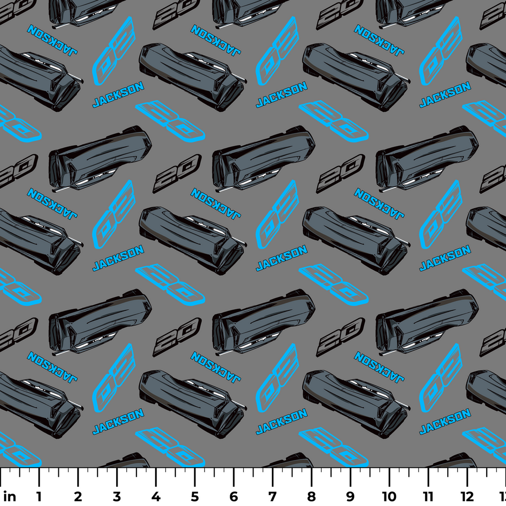 Sleek Disney-Pixar Cars Jackson sport design featuring modern blue text and geometric patterns on a contemporary gray background.