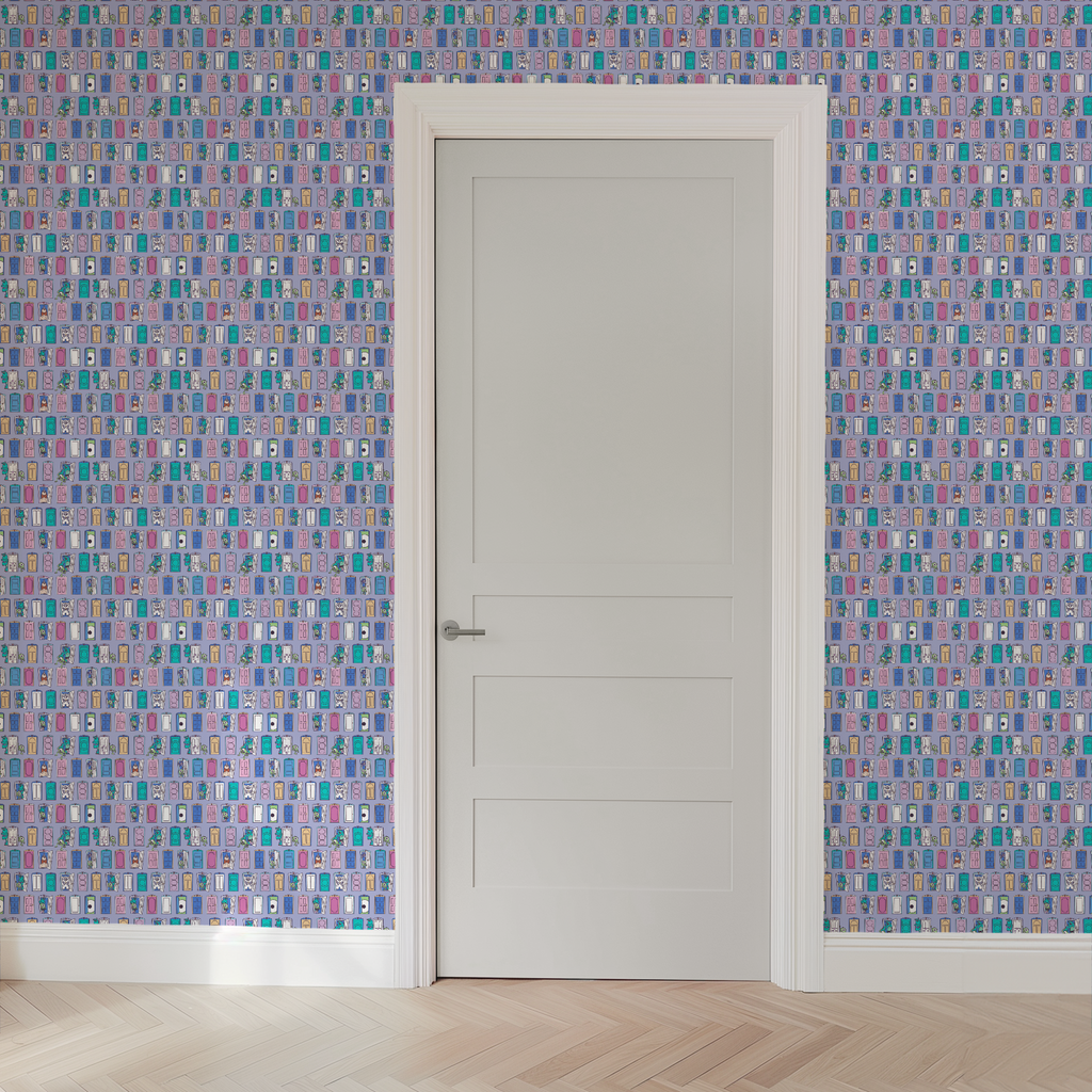 Disney Pixar Monsters Inc Purple Pastel Doors Wallpaper