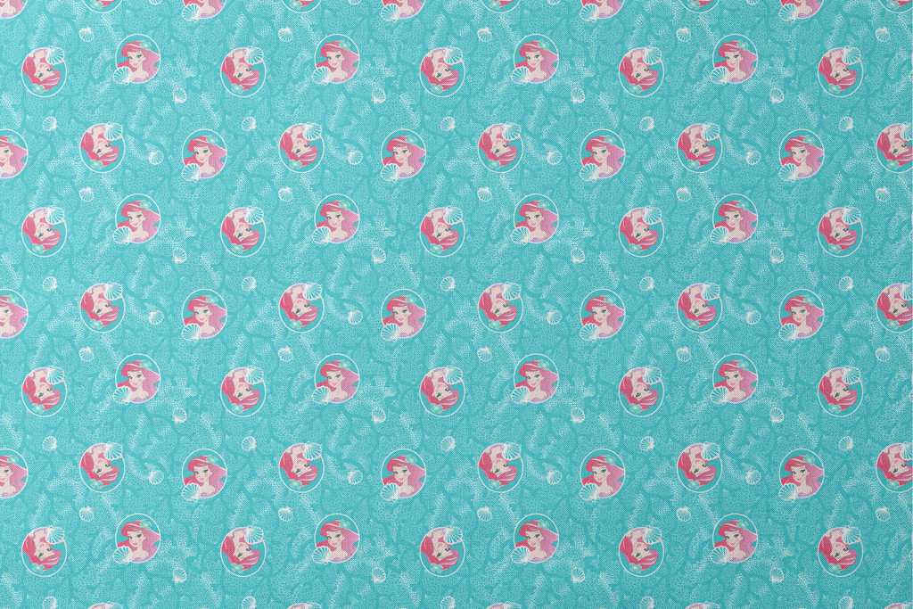 Dive into the magical underwater world with this enchanting Little Mermaid-themed fabric in turquoise blue. Perfect for children's apparel, quilting, or whimsical home decor projects.