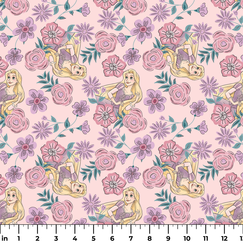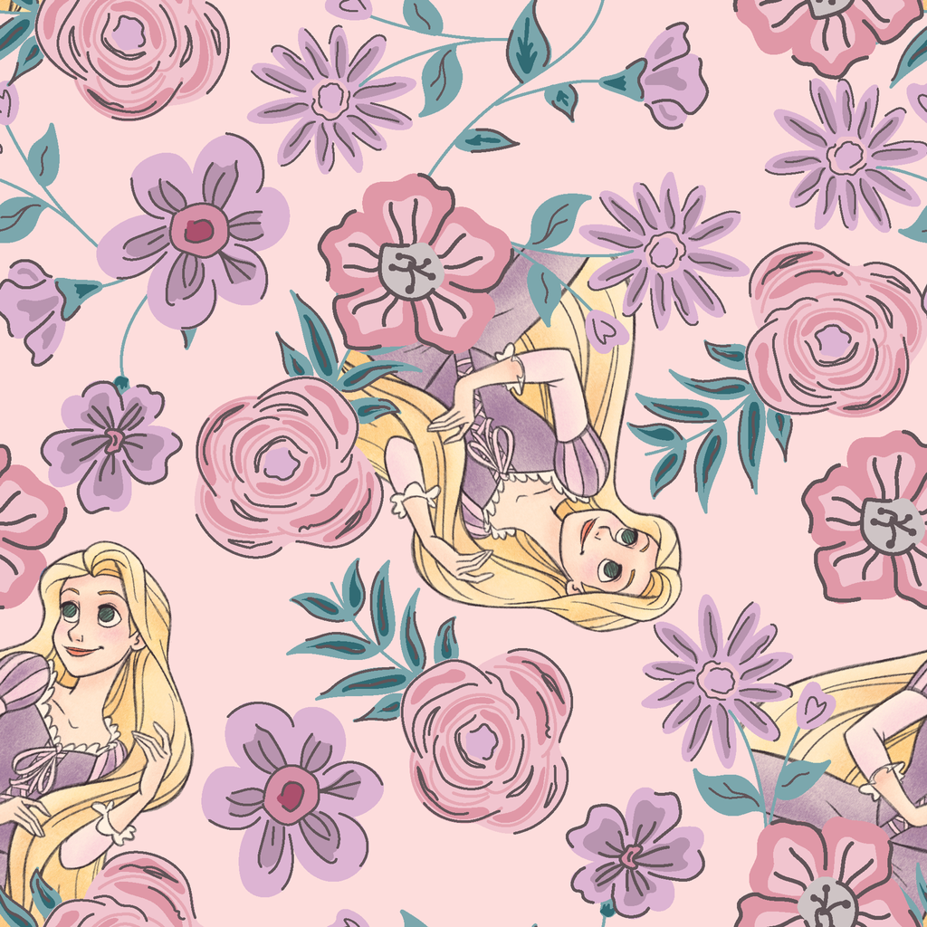 Disney Rapzunel Floral Pattern on Pink Fabric