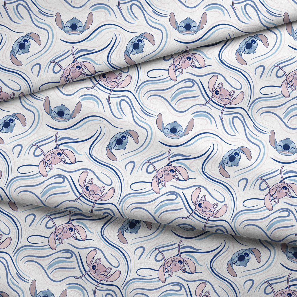 Disney Stitch and Angel Blue Swirls Fabric