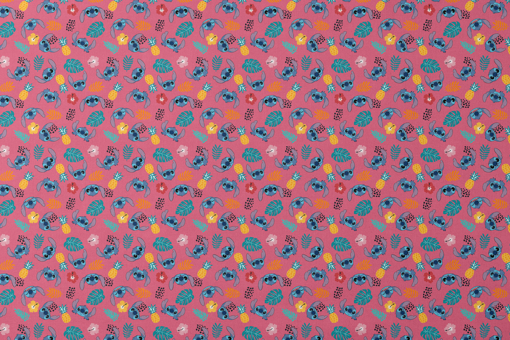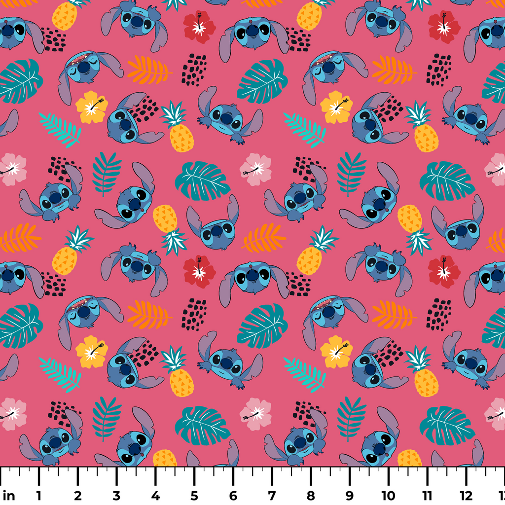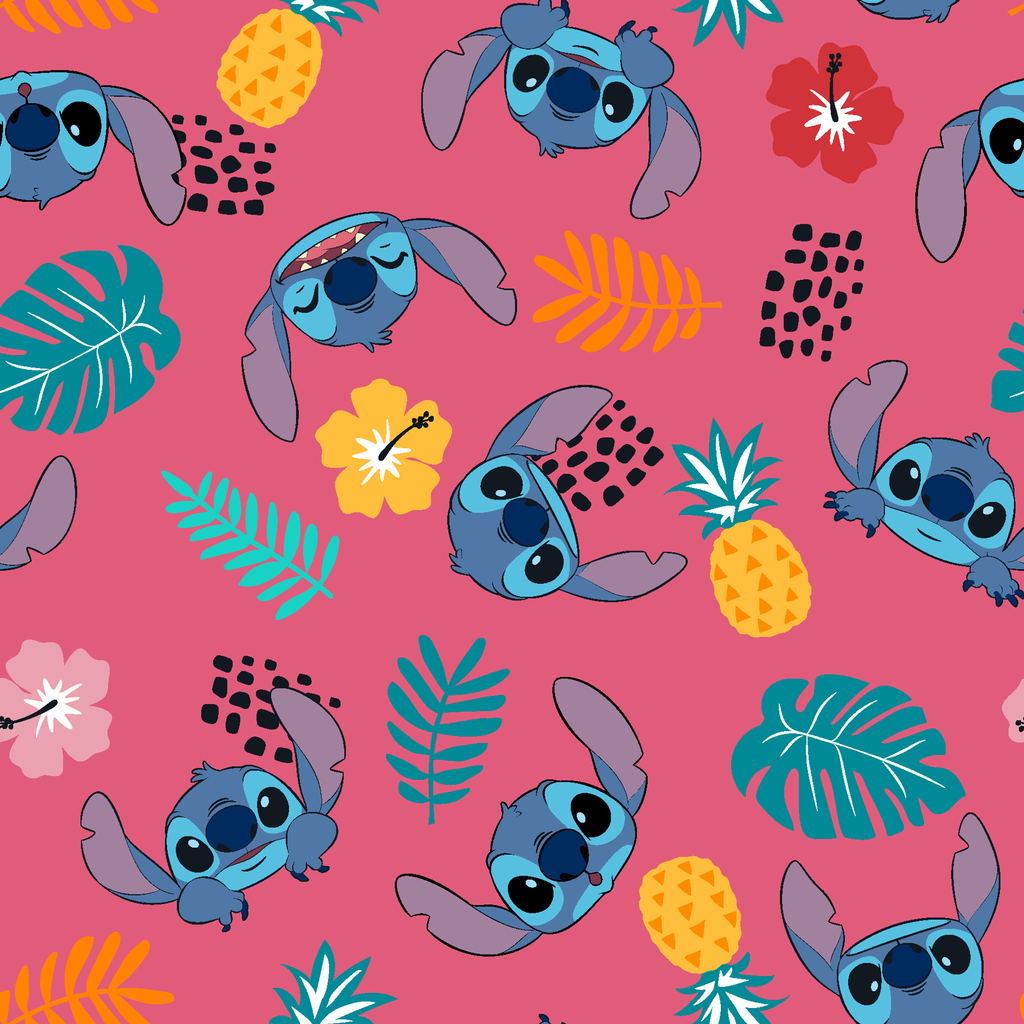 Disney Stitch Tropical Head Toss on Pink Fabric
