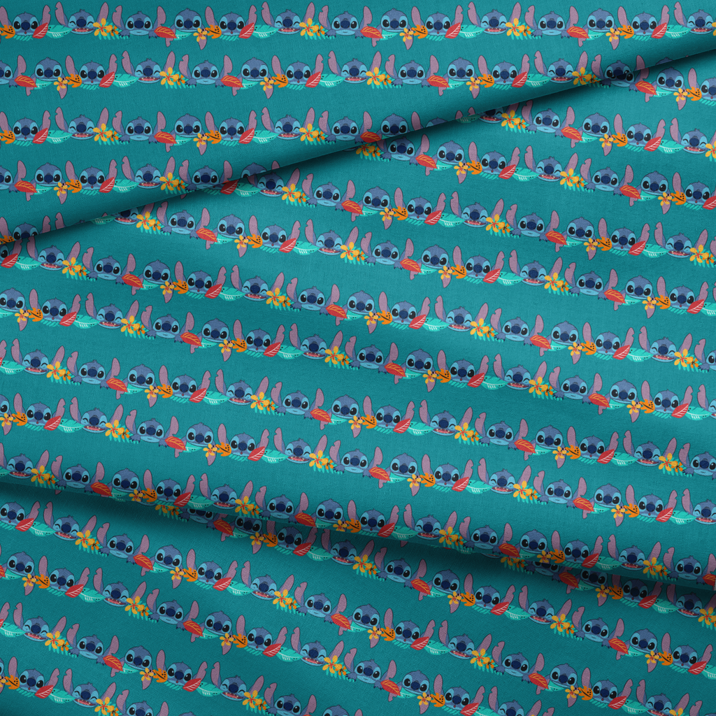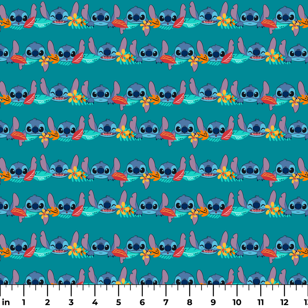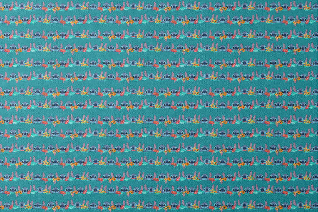 Disney’s Stitch pops between stripes of tropical flowers and leaves in this playful island-inspired design. ©Disney