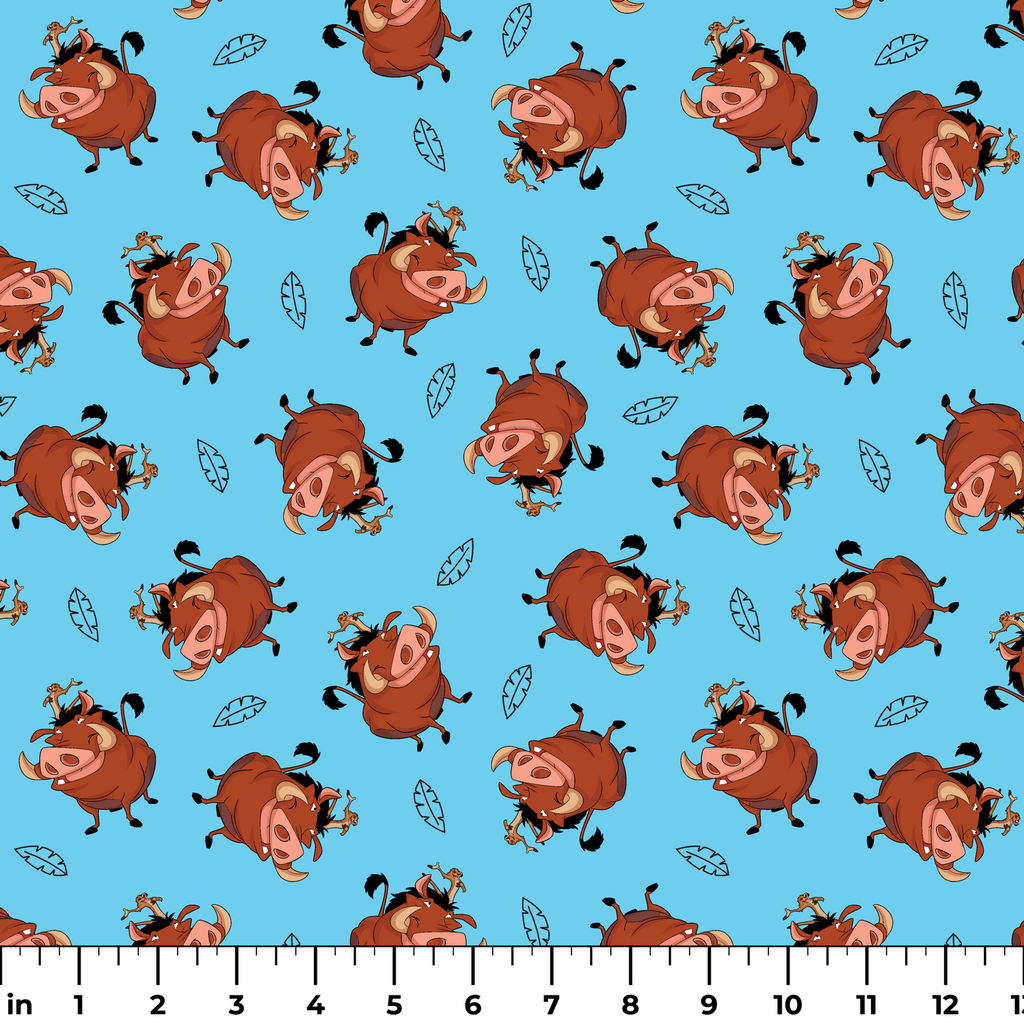 Disney The Lion King Blue Pumbaa & Leaves Fabric