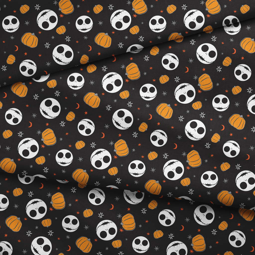 Disney Tim Burton's The Nightmare Before Christmas Black Pumpkins & Moons Fabric