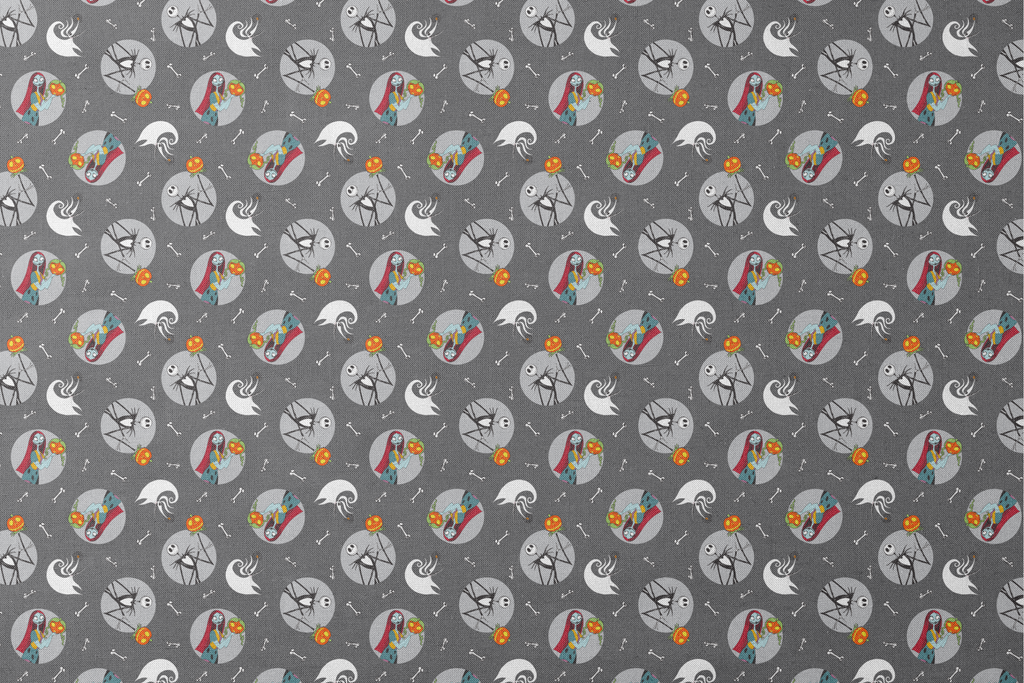 Disney Tim Burton's The Nightmare Before Christmas Gray Circular Character Fabric