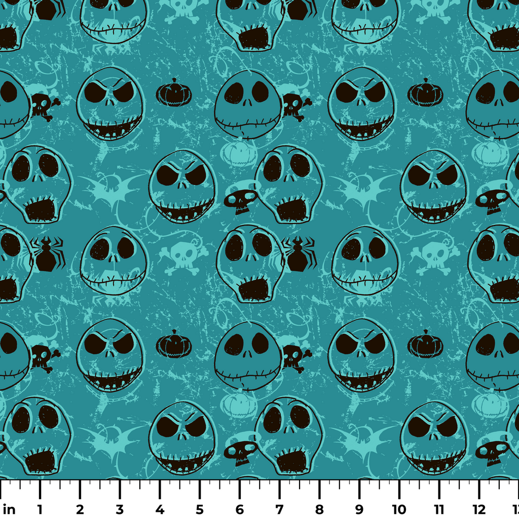 Disney Tim Burton's The Nightmare Before Christmas Spooky Teal Skull Fabric