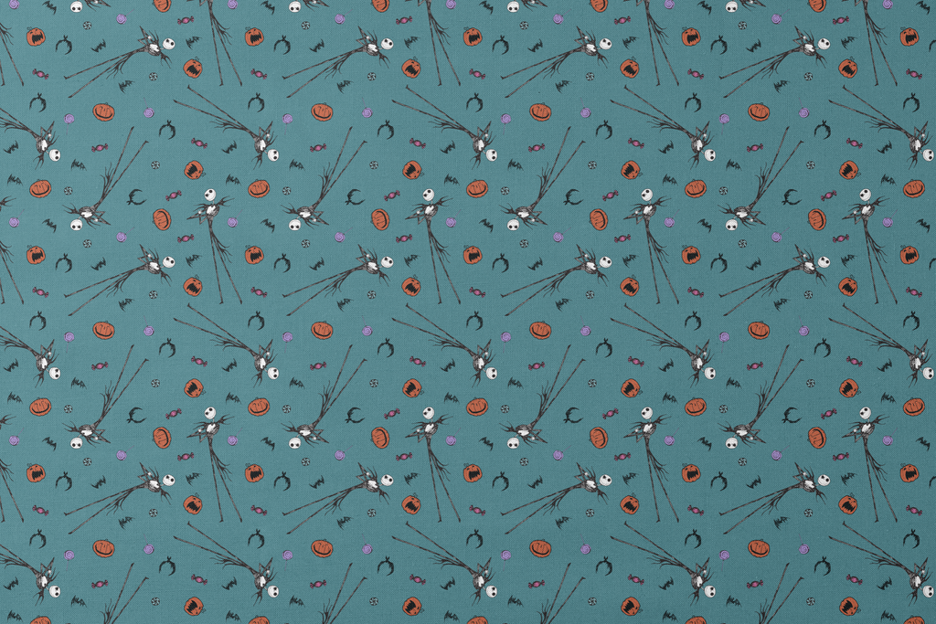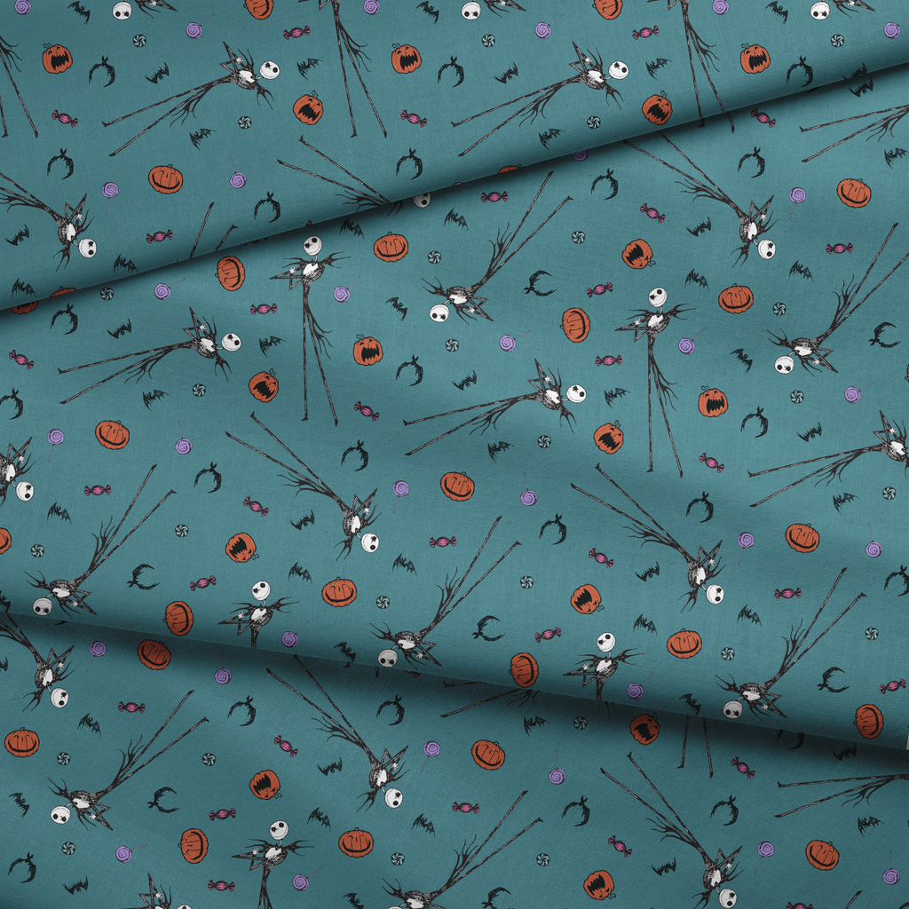Disney Tim Burton's The Nightmare Before Christmas Teal Halloween Candy Fabric
