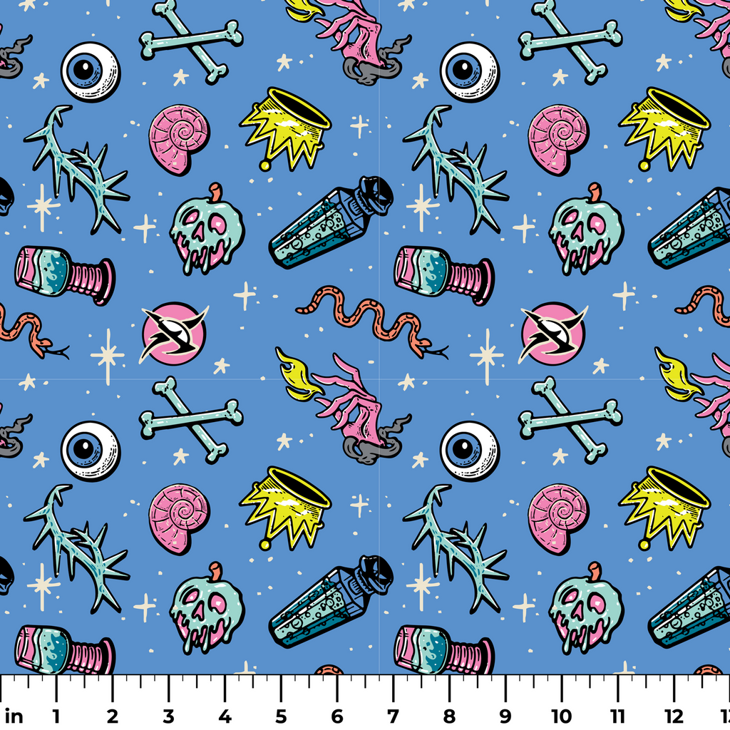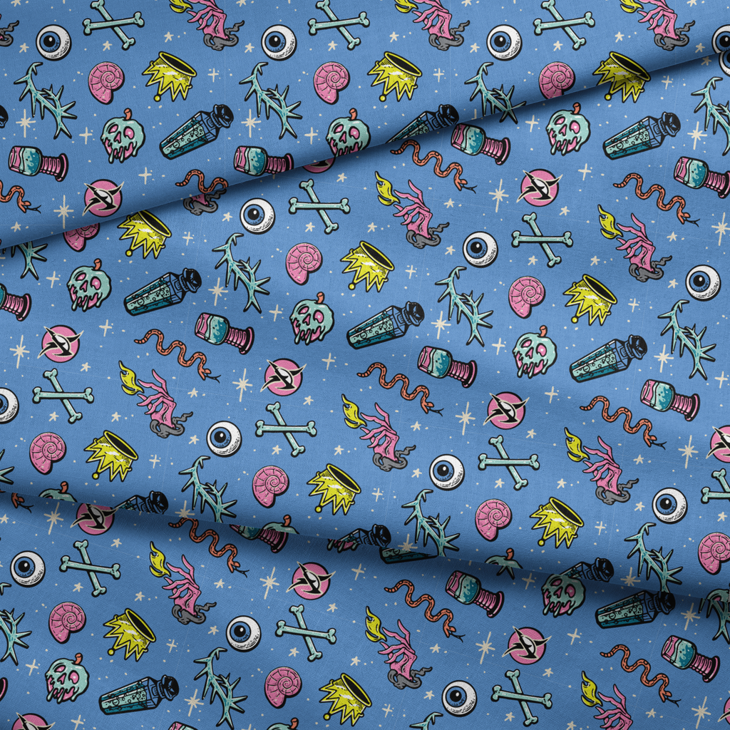 Disney Villains Icon Toss on Blue Fabric