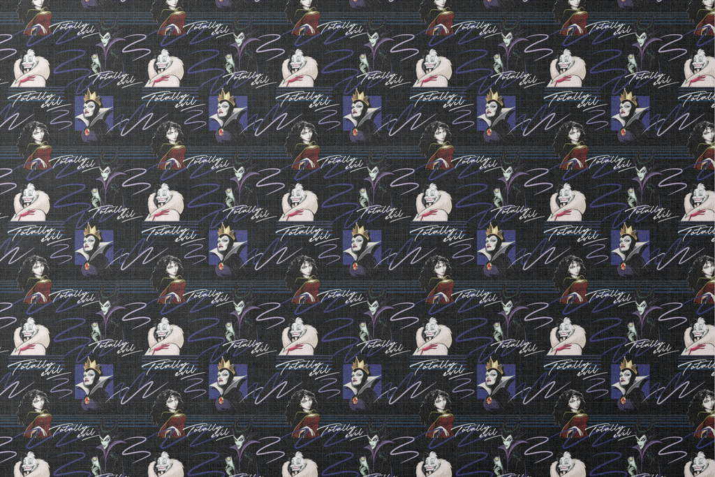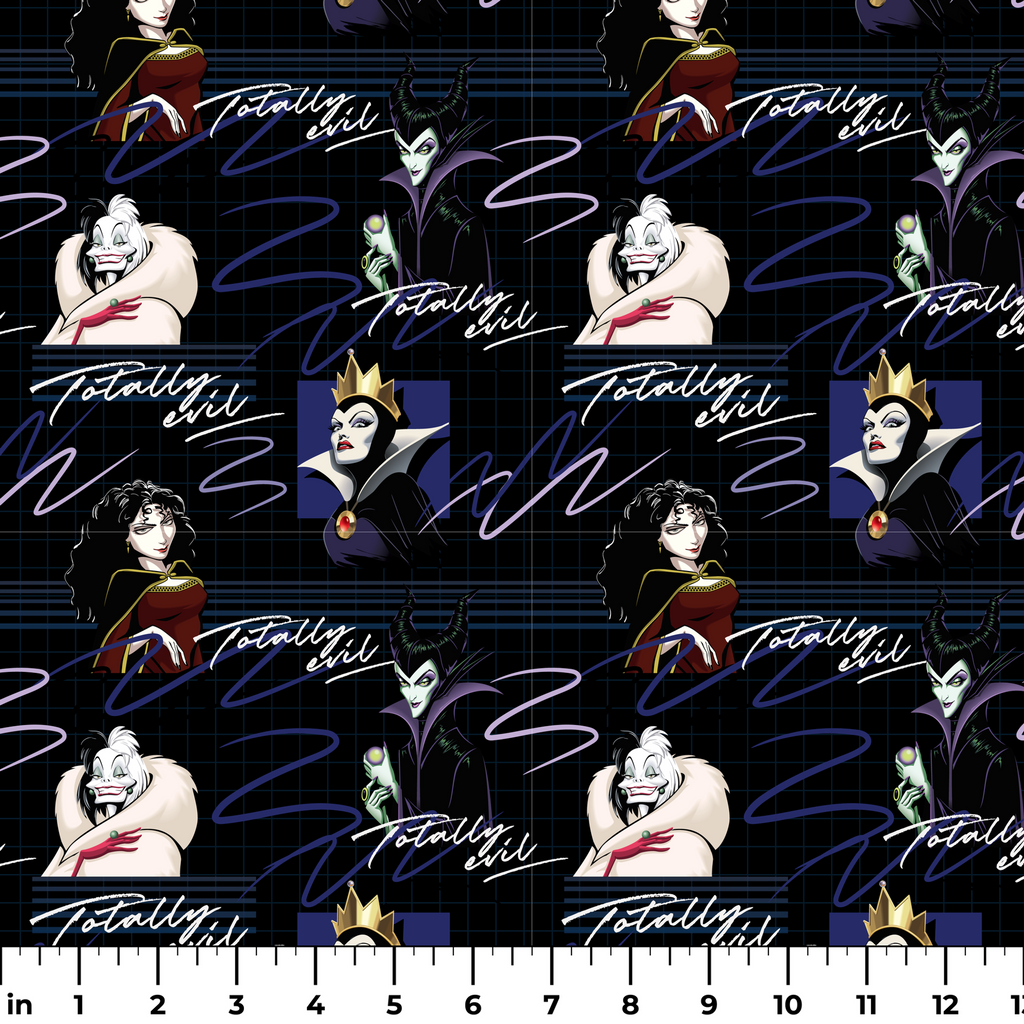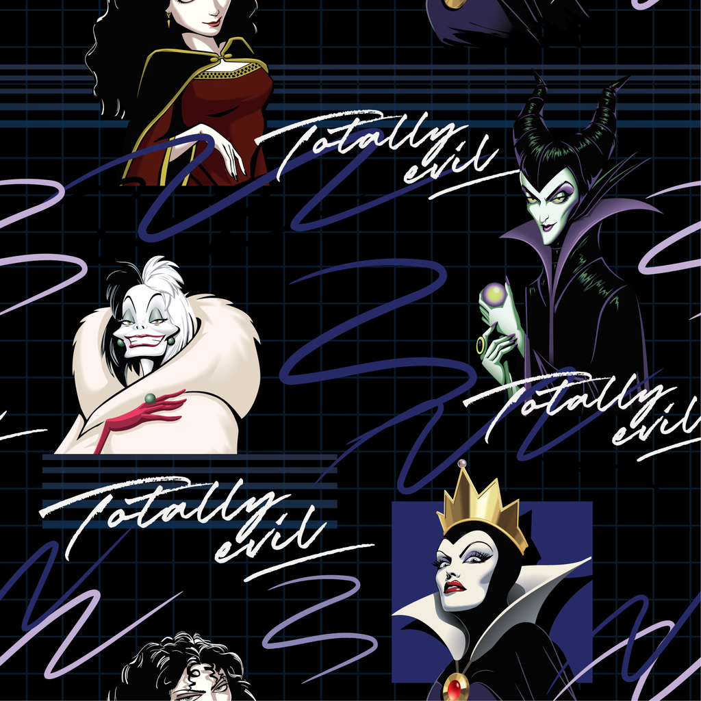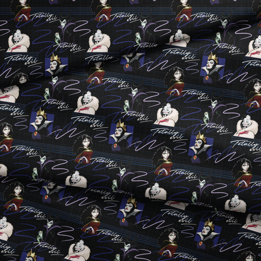 Classic Disney villains featuring Maleficent, Cruella, Evil Queen, and more with "Totally Evil" text on a black background. Perfect for fans of iconic Disney animated antagonists.