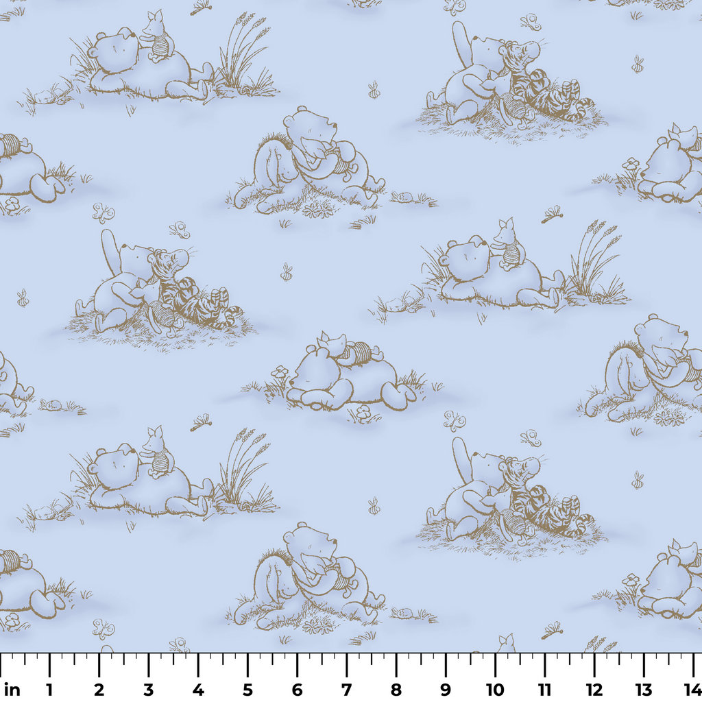 Disney Winnie the Pooh Classic Sketch Blue Fabric