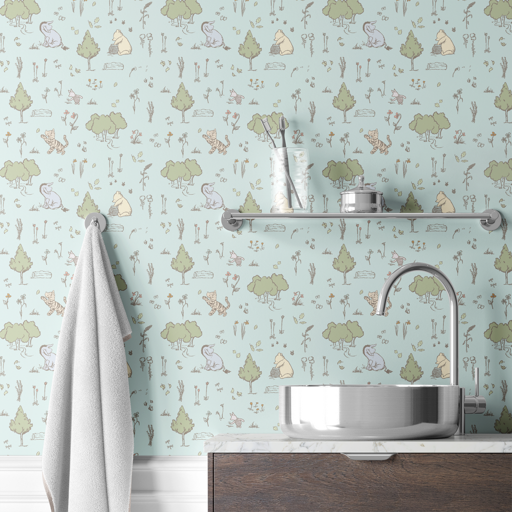 Disney Winnie the Pooh Forest on Blue Wallpaper