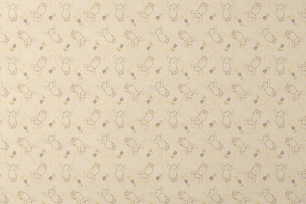 Sweet Winnie the Pooh pattern featuring the beloved bear in playful poses on a soft beige background, perfect for nursery decor or children's apparel.