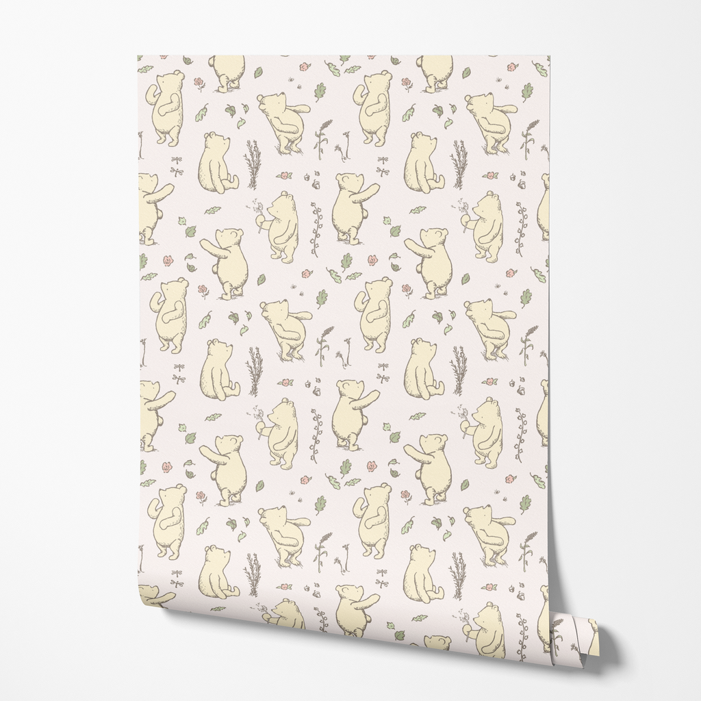 Classic Disney Winnie the Pooh among delicate flowers and leaves in this whimsical toss. Perfect for any space.