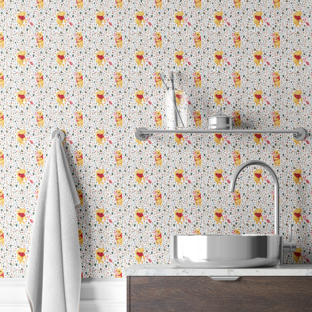 Disney Winnie the Pooh & Piglet Floral Pattern Wallpaper