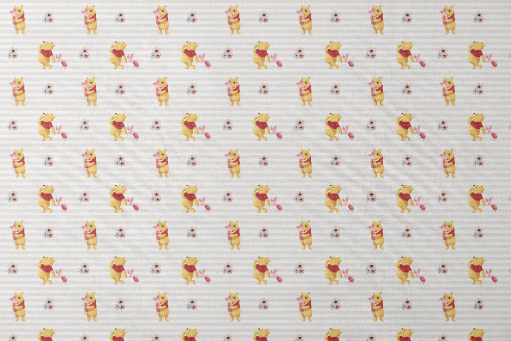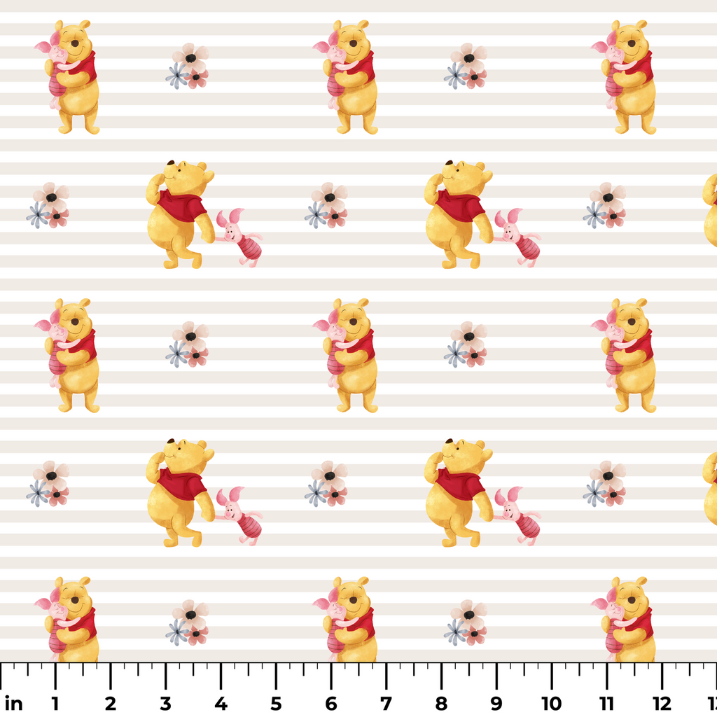 Disney Winnie the Pooh & Piglet Striped Floral Fabric