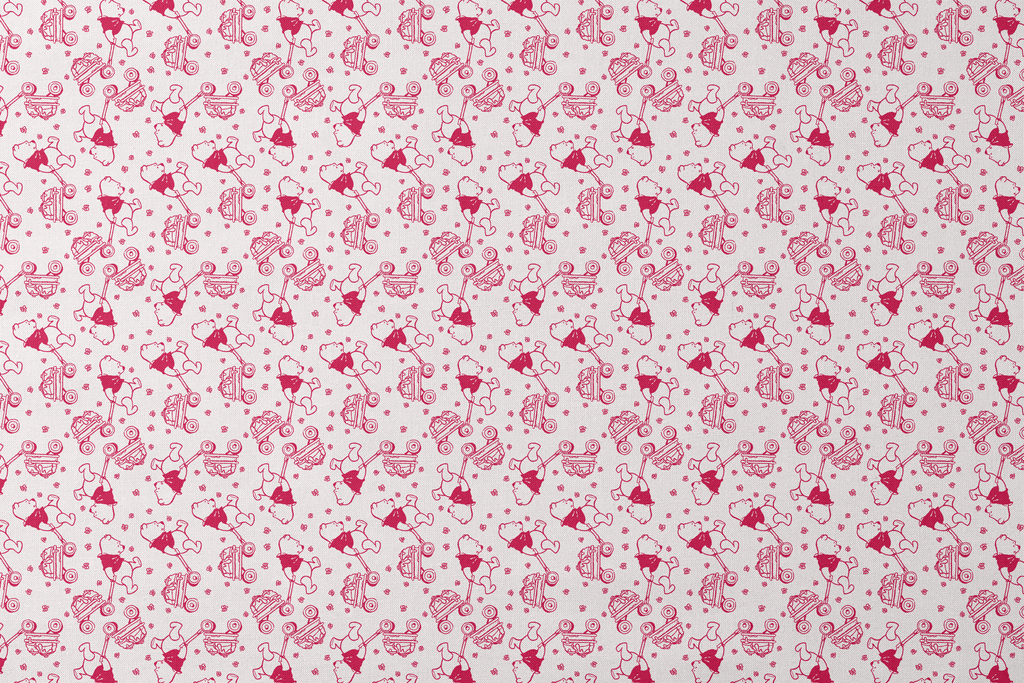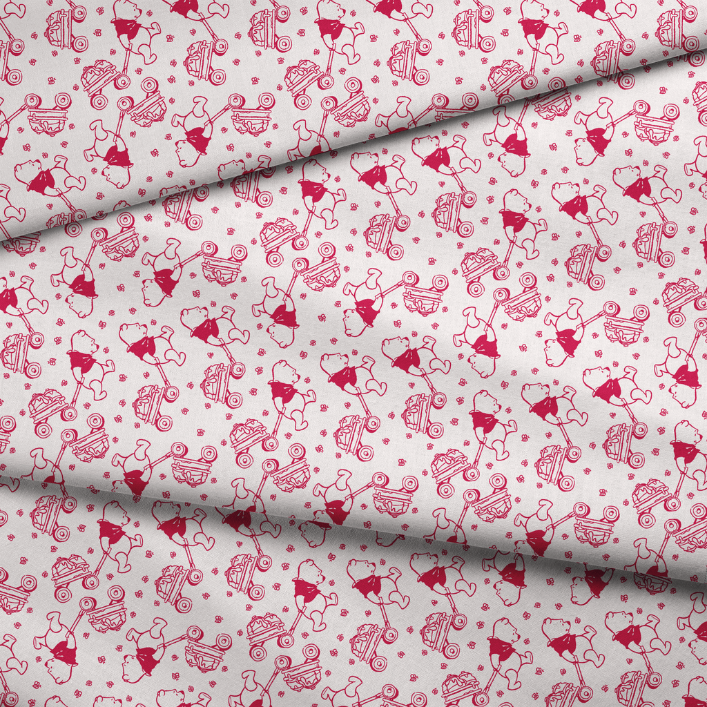 Disney Winnie the Pooh red and pink retro wagon and truck pattern. Perfect for kids apparel and nursery decor.