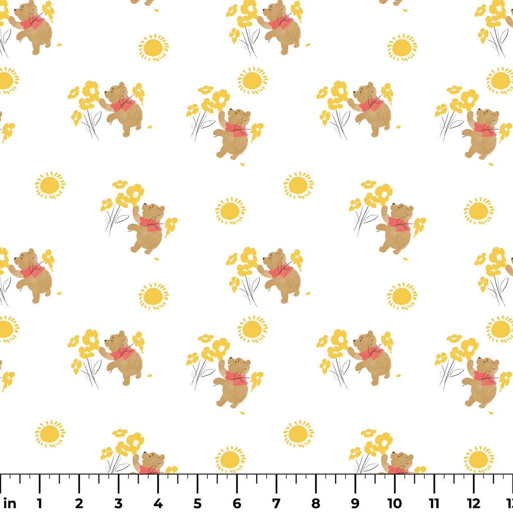 Disney Winnie the Pooh Yellow Floral Sun Fabric