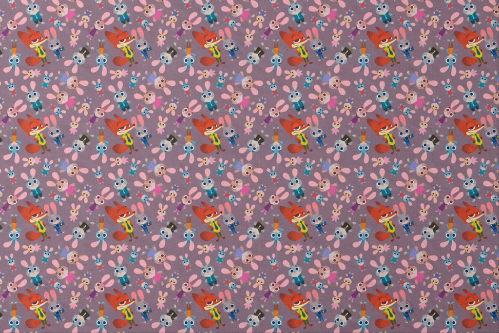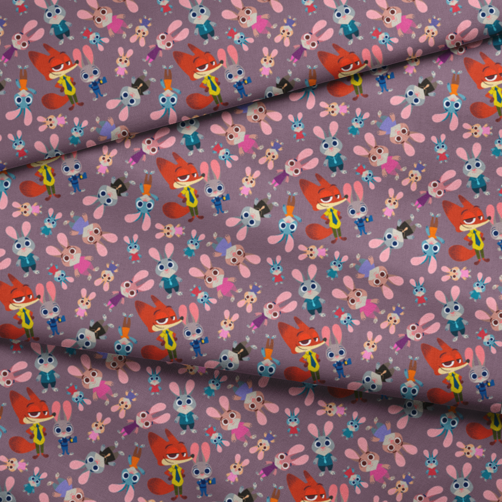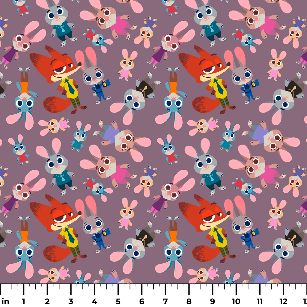 Disney Zootopia Judy & Nick Bunny Toss on Pink Fabric