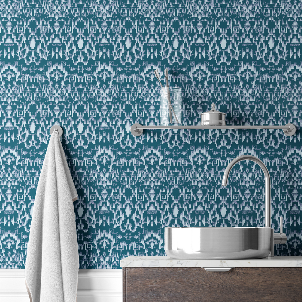Echo Ikat on Blue Wallpaper