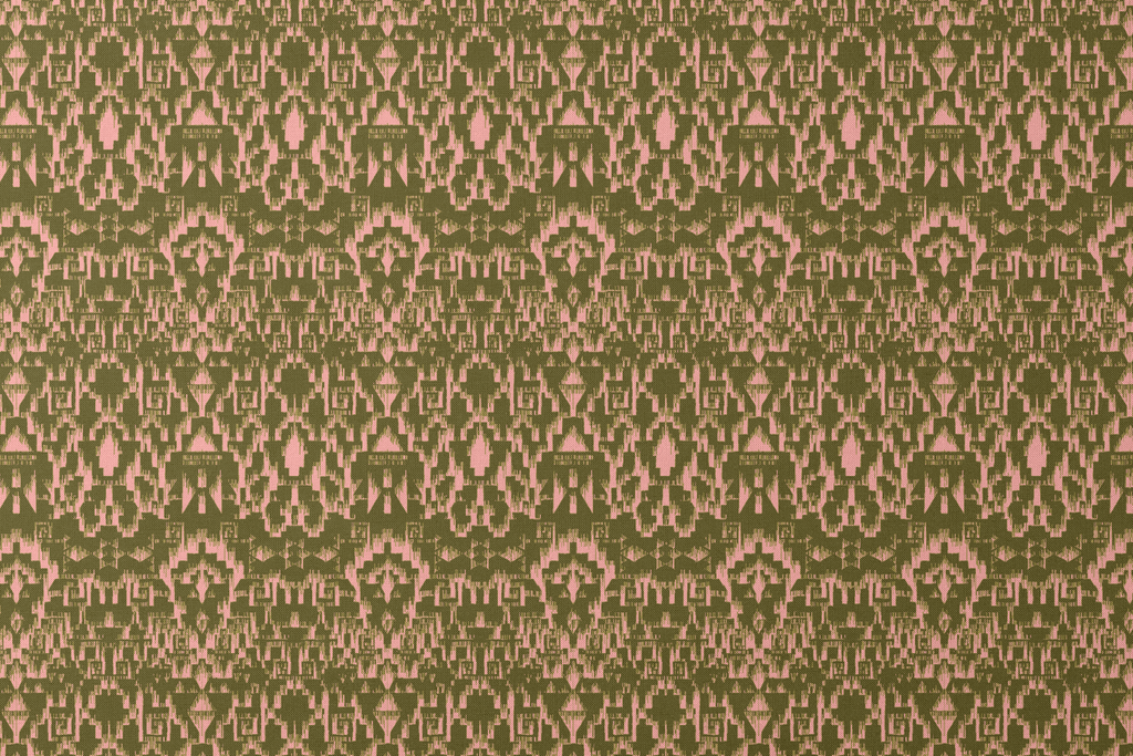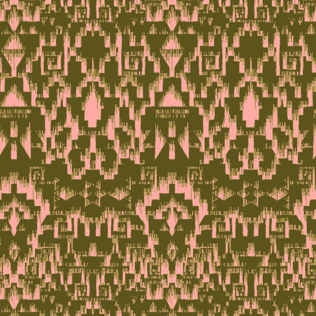 Stunning geometric ikat pattern in olive green and blush pink, featuring traditional tribal motifs for a heritage-inspired bohemian aesthetic perfect for home decor or apparel.
