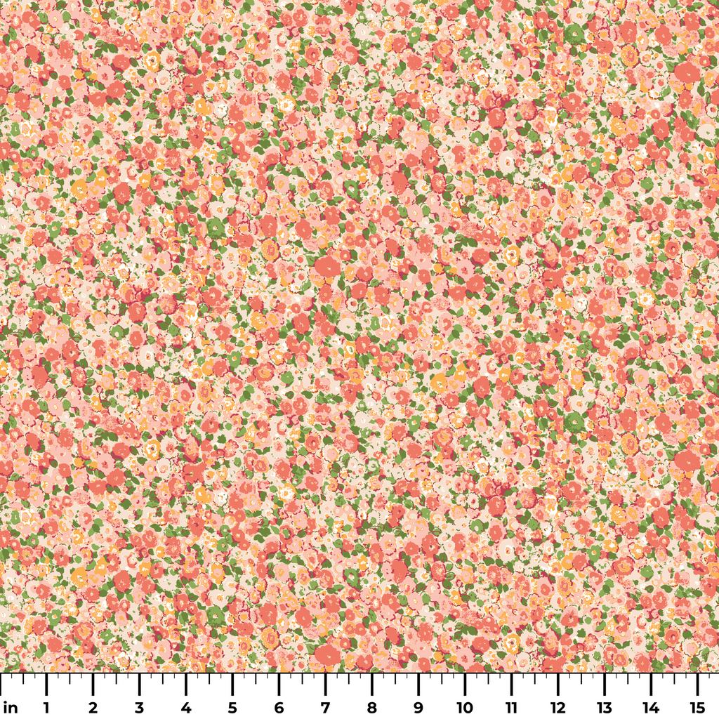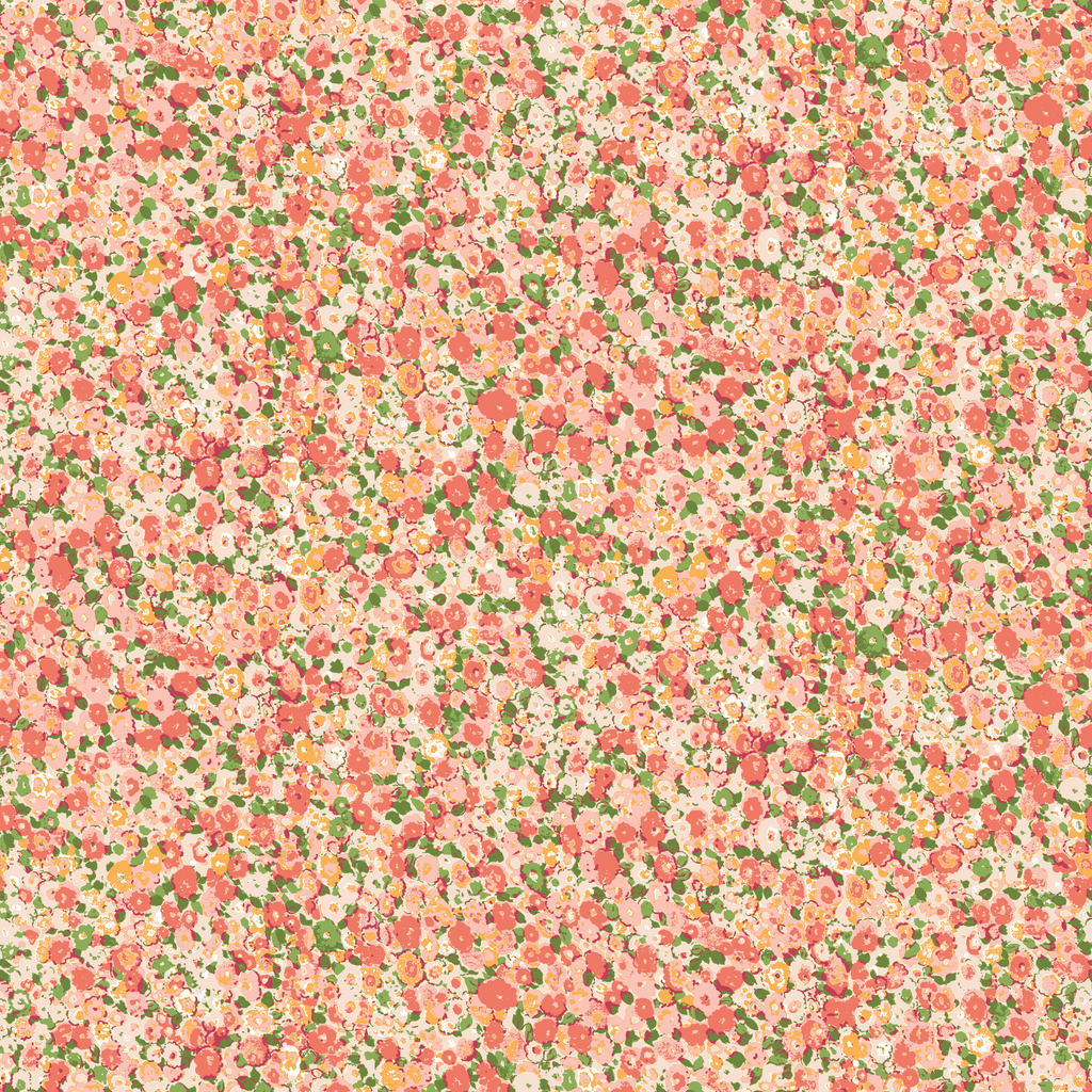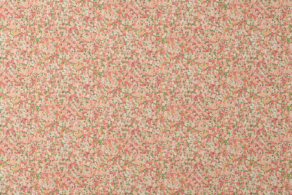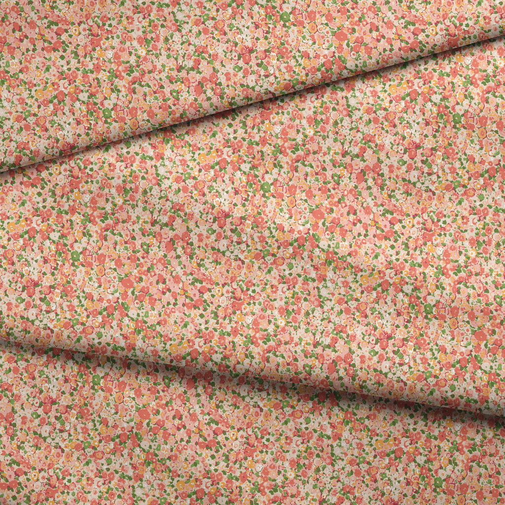 Delicate vintage floral pattern featuring tiny scattered blooms in soft coral pink and green tones, perfect for a romantic cottagecore aesthetic.