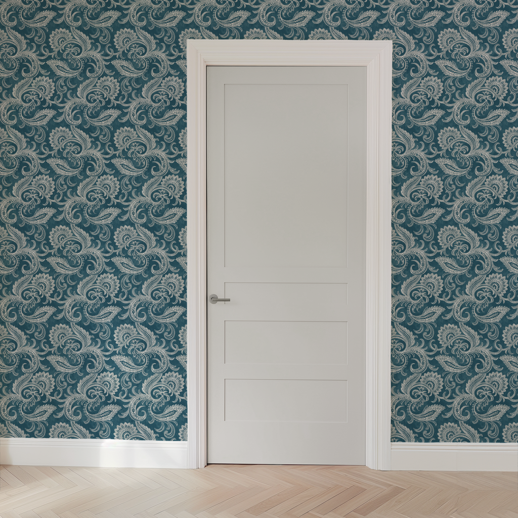 Elegant Paisley on Denim Wallpaper