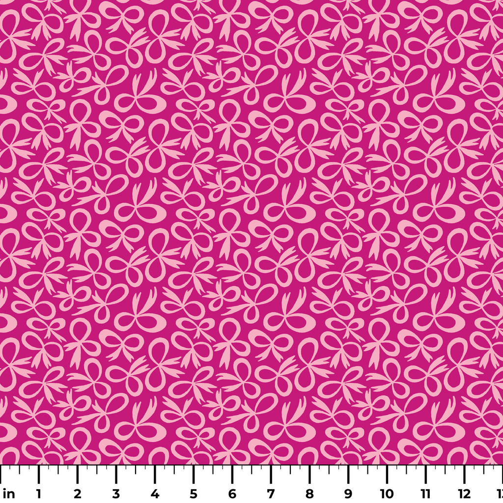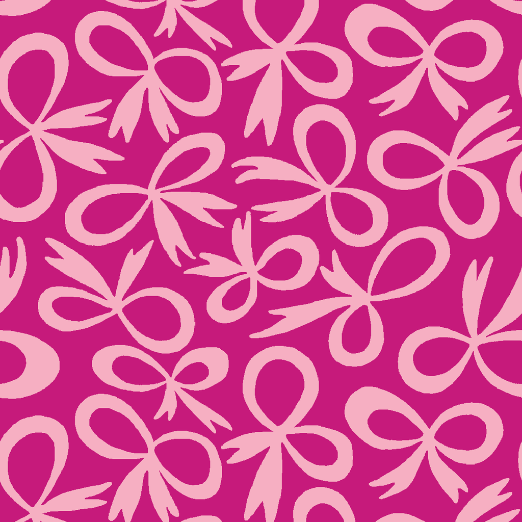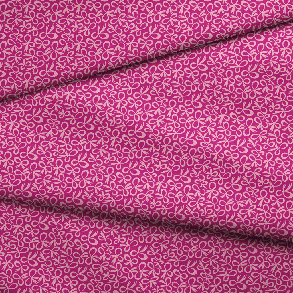 Vibrant pink pattern featuring playful bow motifs in a lighter pink shade. This contemporary design with flowing organic shapes creates a whimsical, feminine aesthetic perfect for apparel or home decor.
