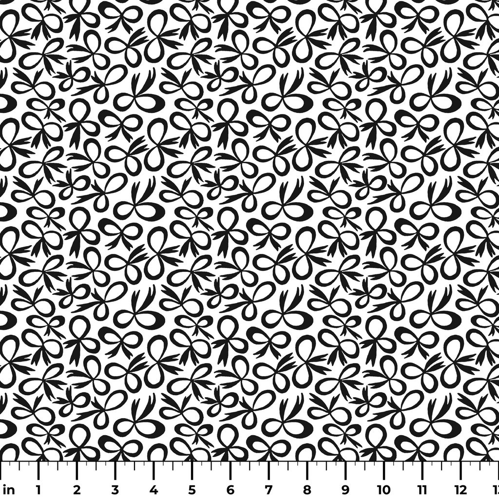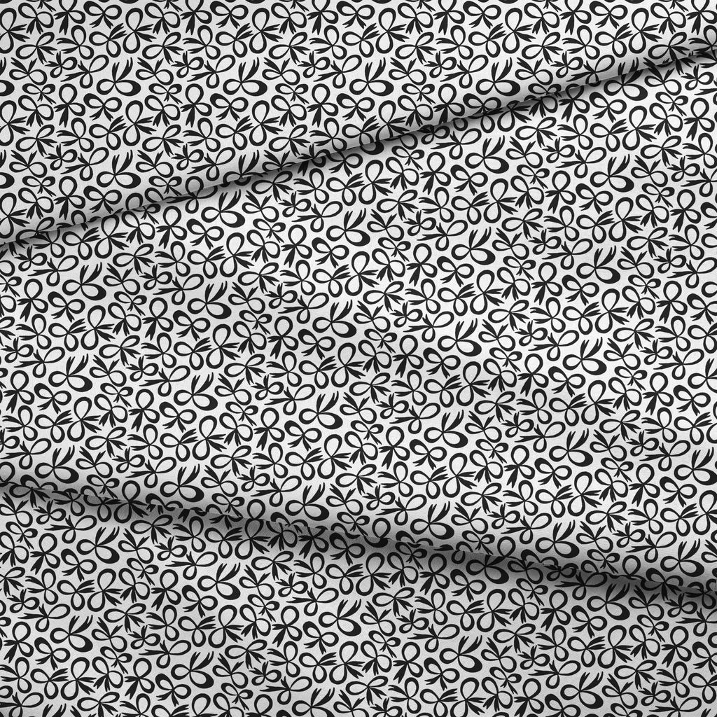 Elegant black and white bow pattern featuring abstract organic shapes on a clean background. Perfect for contemporary home decor, apparel, and stylish accessories.