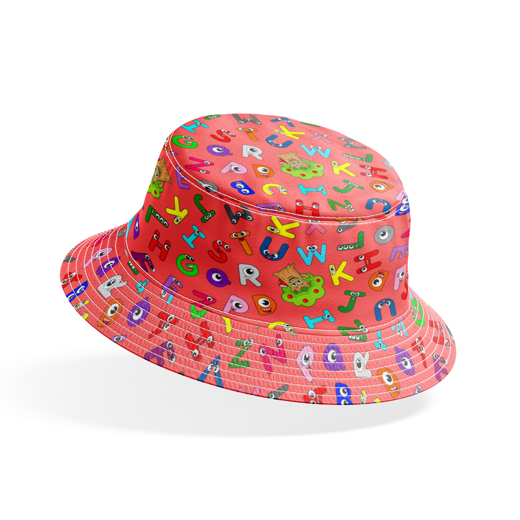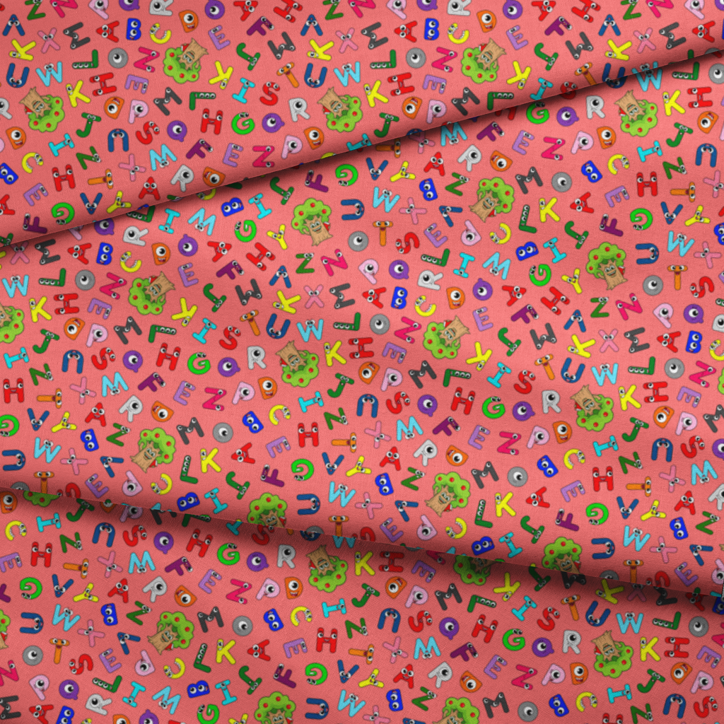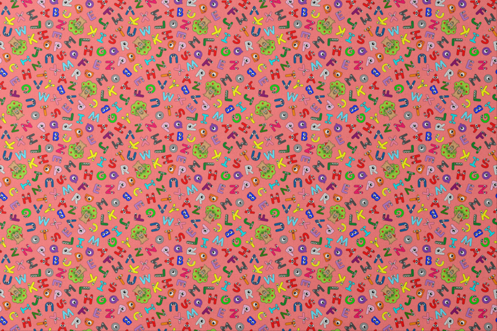 Colorful English Tree alphabet pattern featuring playful letters in pink, green, blue, and yellow on a coral-red background, perfect for children's educational crafts or fun nursery decor.