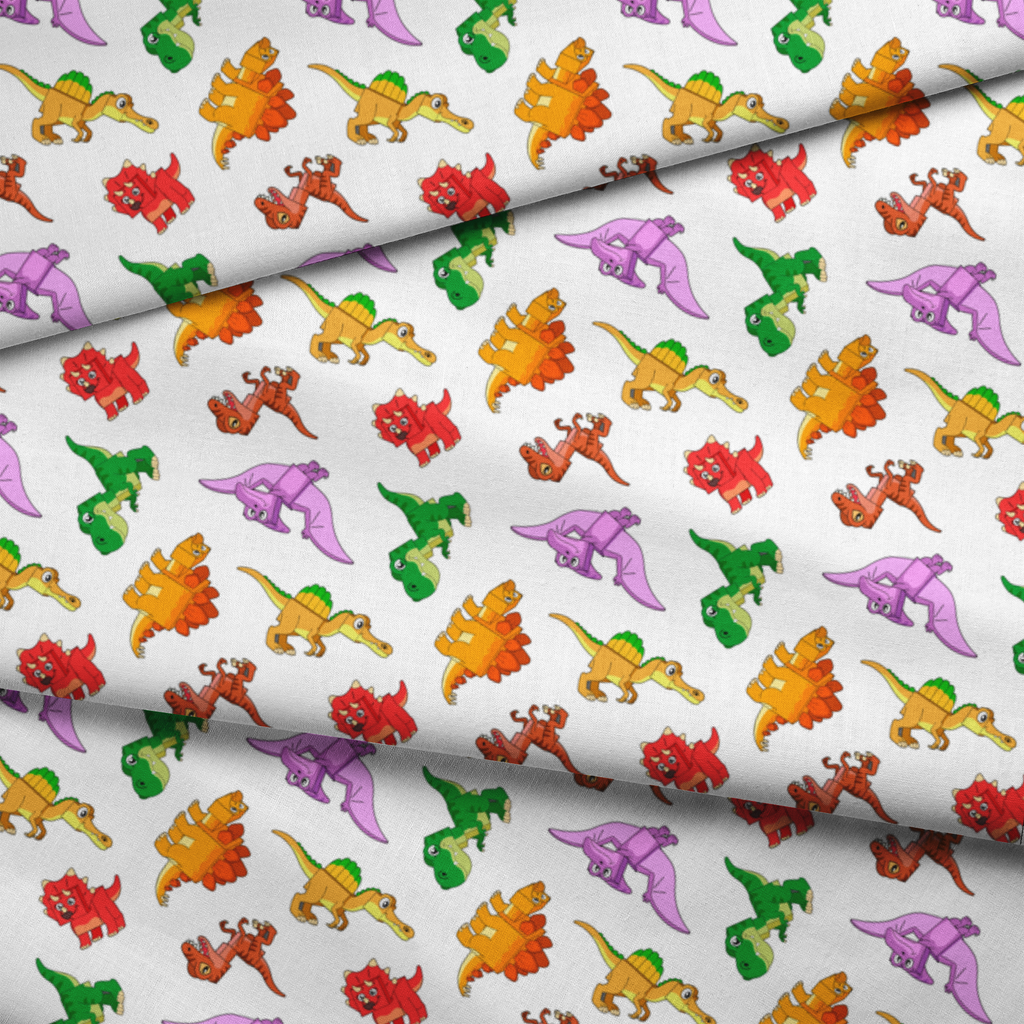 English Tree Colorful Cartoon Dinosaurs on White Fabric