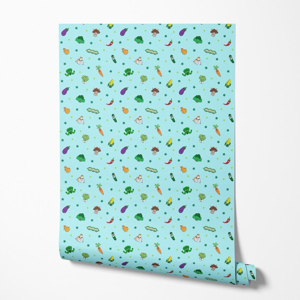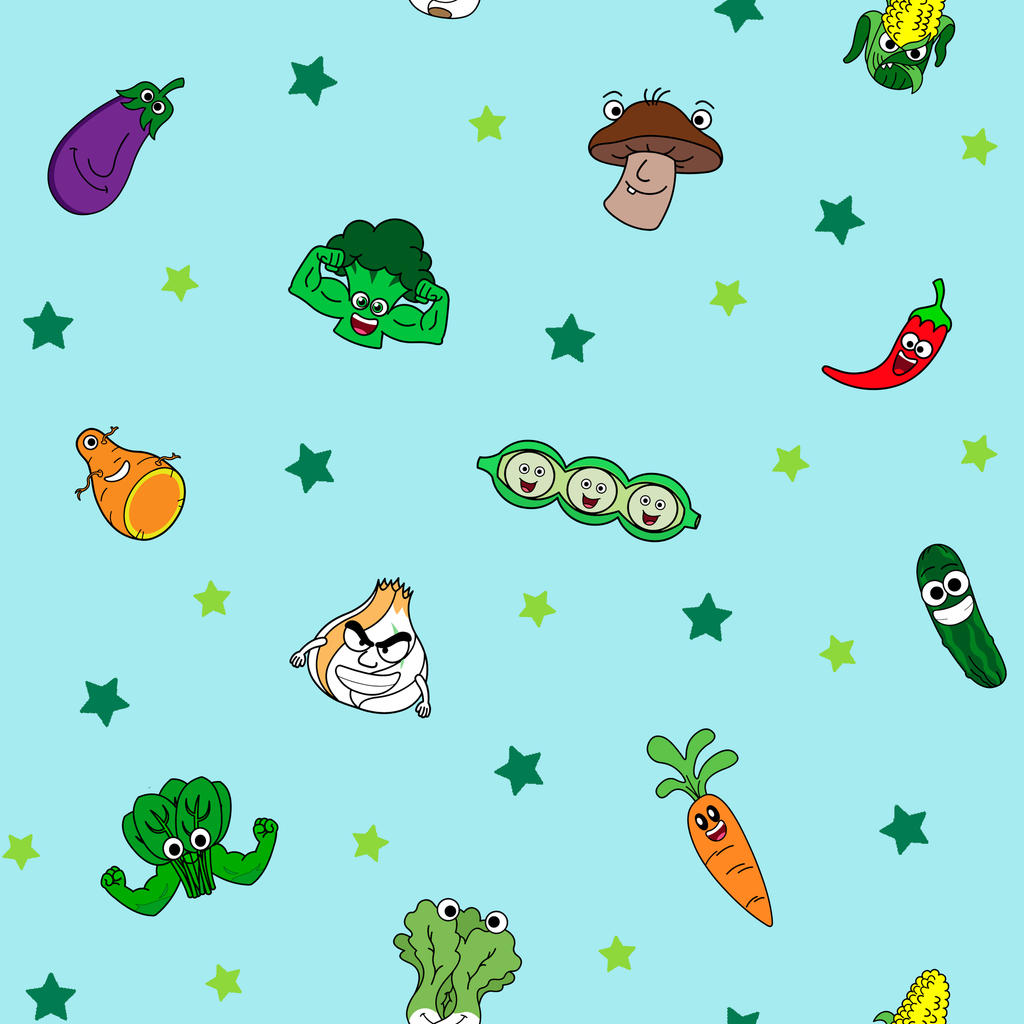 English Tree Happy Veggie Characters on Blue Wallpaper