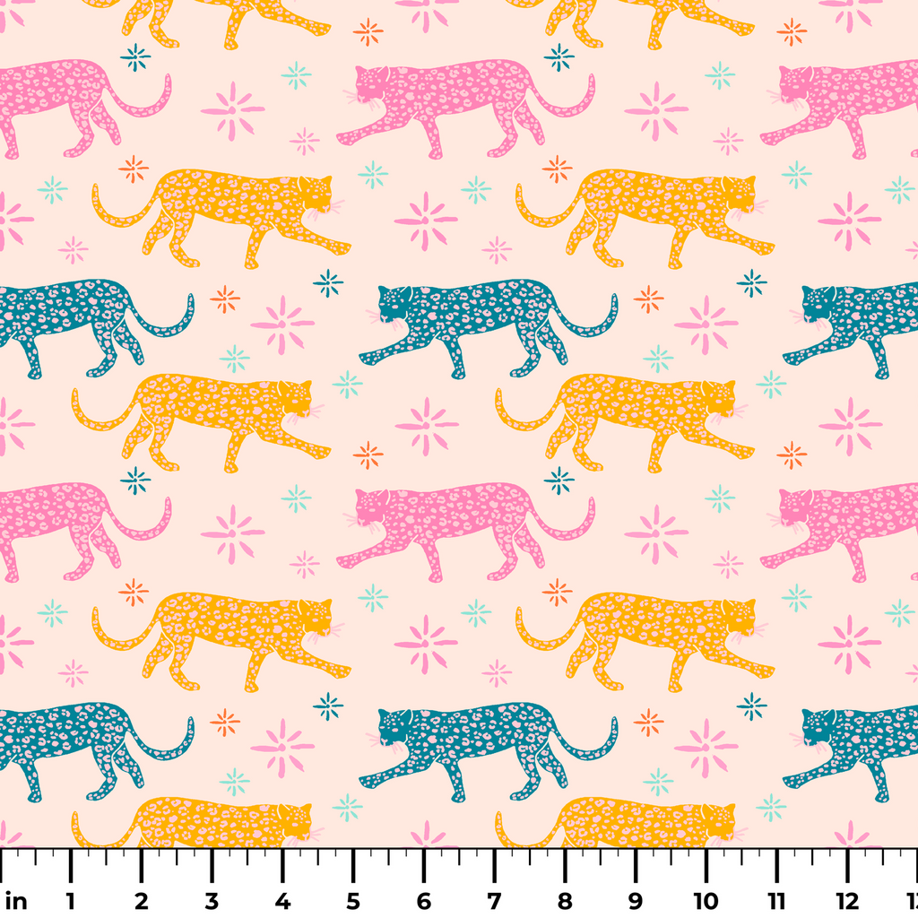 EttaVee Colorful Leopards on Light Pink Fabric