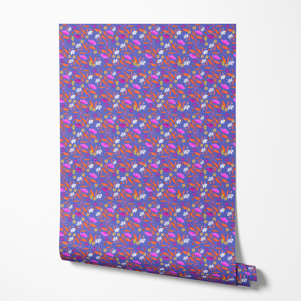 EttaVee Cottage Fleurs on Purple Wallpaper