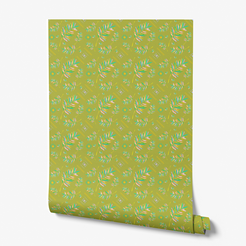 EttaVee Palm Leaves on Olive Green Wallpaper
