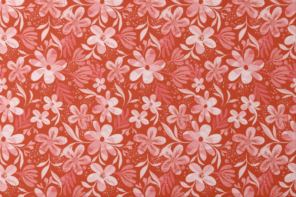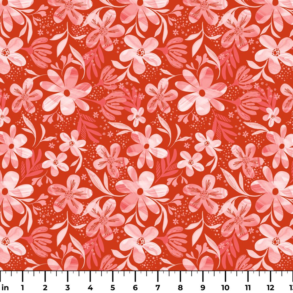 EttaVee Pink Blooms on Red Fabric