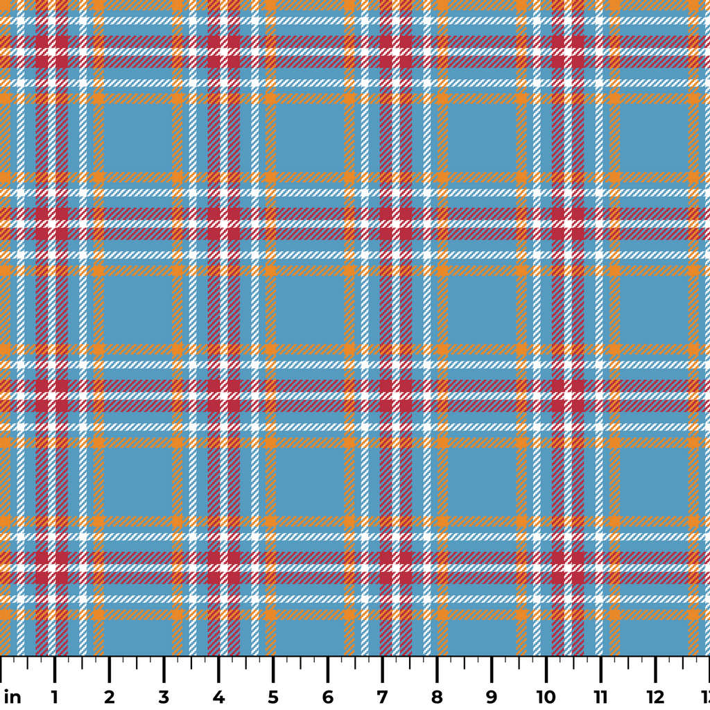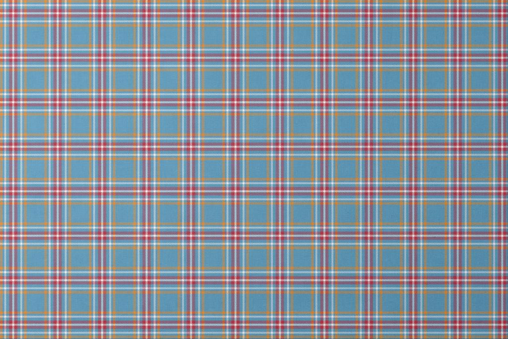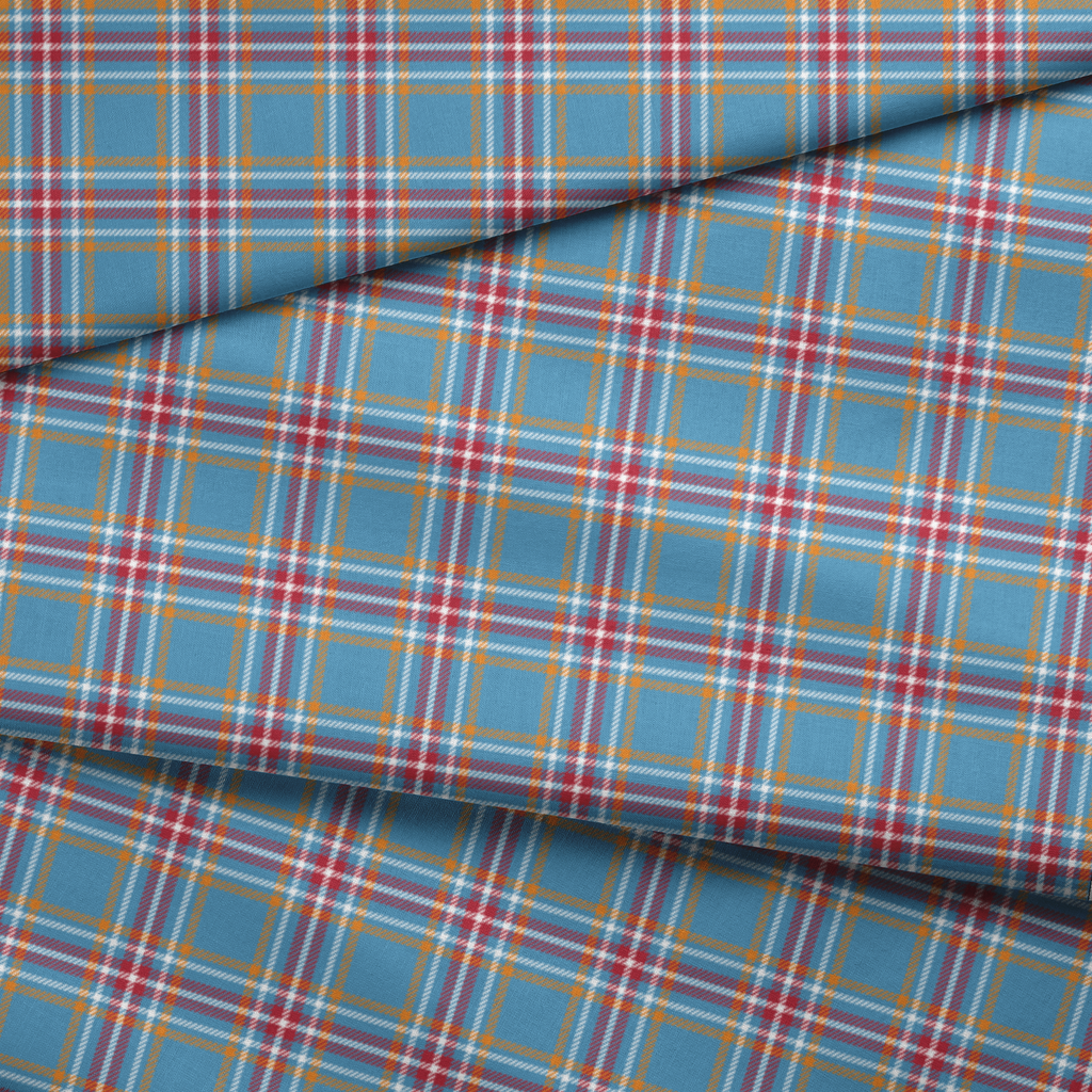 This vibrant tartan plaid features a stunning blend of cornflower blue backgrounds intersected with crisp white lines, warm burnt orange accents, and rich cranberry red details. The classic yet contemporary pattern strikes a perfect balance between traditional Scottish inspiration and modern color sensibility. This fabric would shine as cozy throw pillows for your living space or as a statement-making lining for a tailored jacket or tote bag.