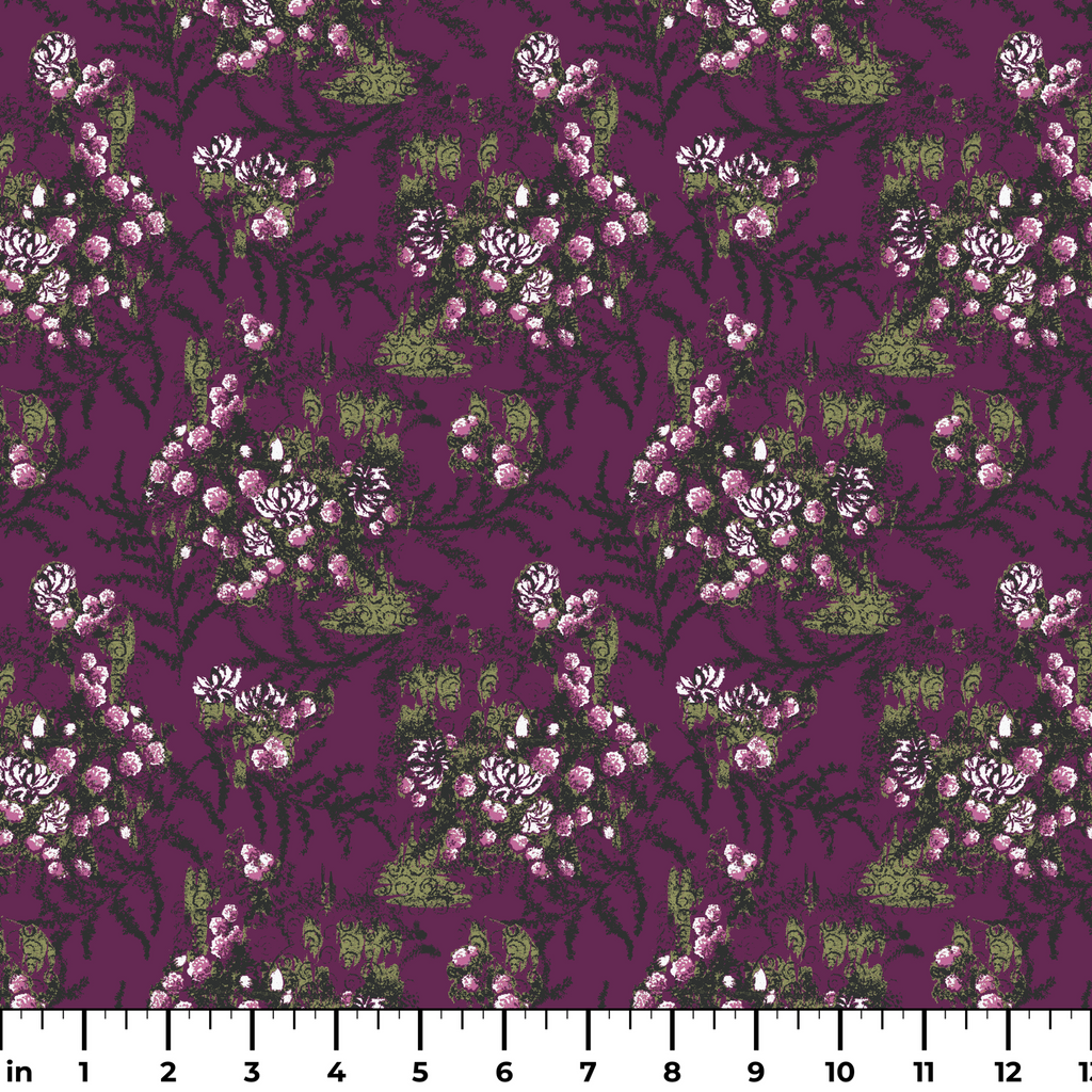 Floral Botanical on Purple Fabric